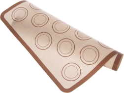 Tapis en silicone pratique avec imprimé de cercles pour façonner uniformément macarons, choux et biscuits. Offre une surface antiadhésive, deux tailles d’anneaux guides (3,2 et 4,5 cm) et une résistance de -40 °C à +200 °C pour la cuisson, la congélation et le réchauffage au micro-ondes.