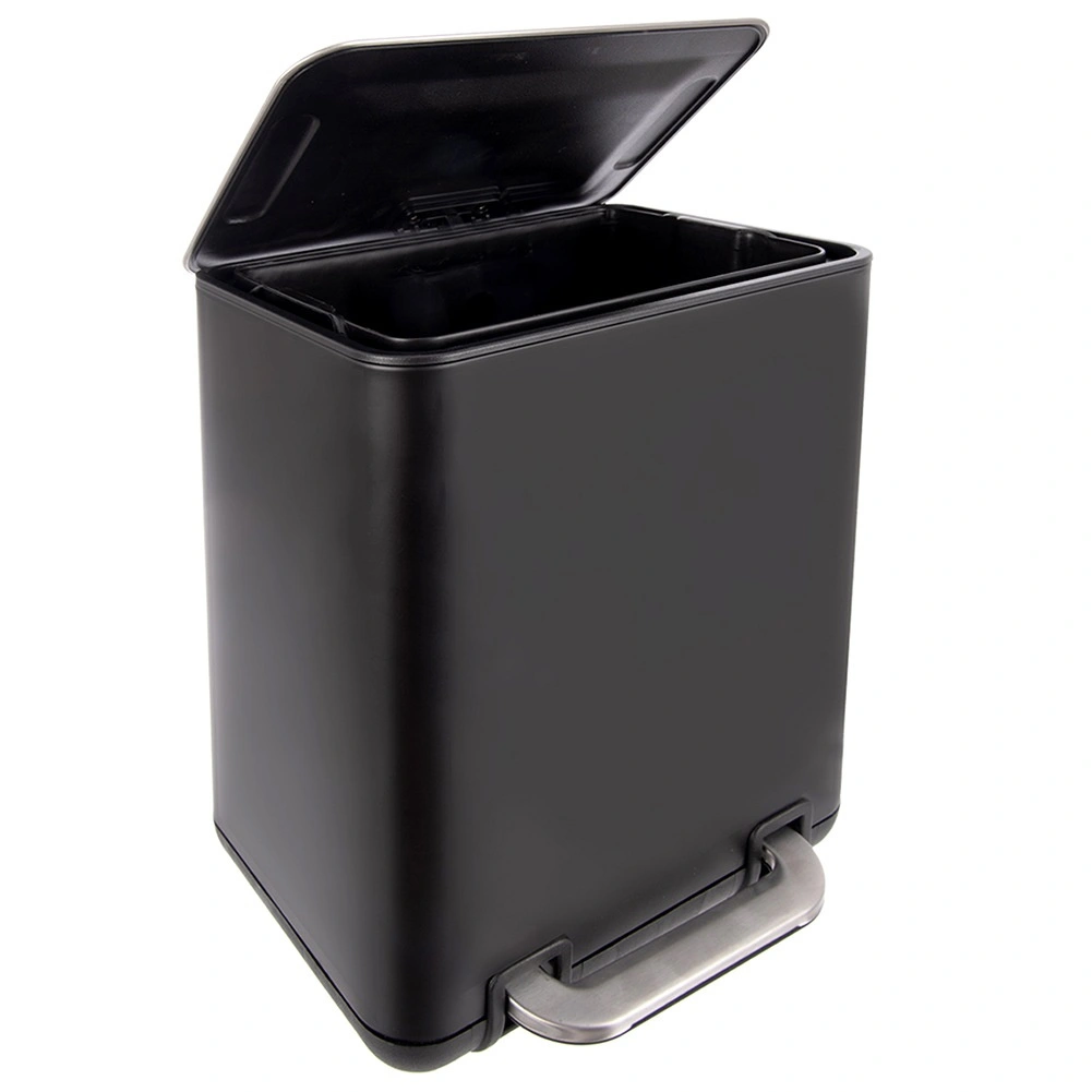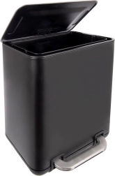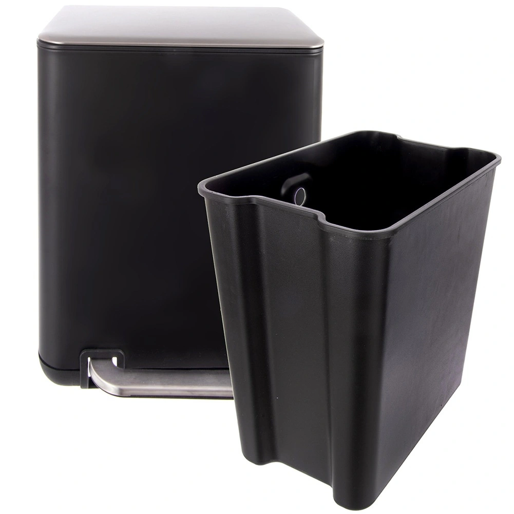 Poubelle élégante et pratique d’une capacité de 20 l avec ouverture à pédale pour une utilisation hygiénique sans contact manuel. Conception robuste en acier inoxydable finition noire mate, seau intérieur amovible pour un vidage et un nettoyage faciles. Idéale pour la cuisine, la salle de bain et le bureau.