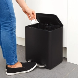 Grâce au seau intérieur en plastique amovible, le vidage des déchets et l’entretien se font en un instant. Grâce à sa forme rectangulaire compacte, la poubelle se place facilement contre un mur ou dans les espaces plus étroits et devient un accessoire élégant de votre intérieur.
