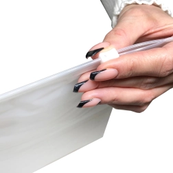 La surface semi-transparente et mate préserve l’intimité tout en permettant un contrôle visuel rapide du contenu. Idéal pour les cosmétiques, articles de toilette ou petits objets.
