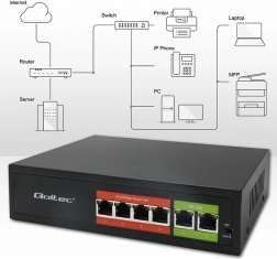 Commutateur PoE compact et fiable pour les réseaux domestiques et professionnels avec 4 ports PoE 10/100 Mb/s et 2 ports uplink RJ45. Prend en charge la norme IEEE 802.3af avec une puissance allant jusqu’à 15,4 W par port et un total de 65 W. Offre une installation plug & play, une détection automatique des appareils PoE, un fonctionnement silencieux sans ventilateur et un châssis métallique robuste pour une exploitation stable.