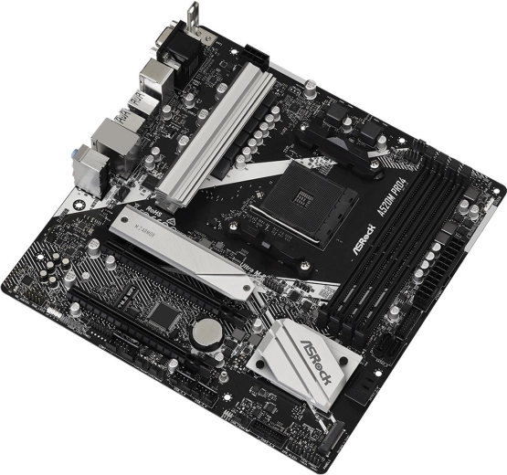 Carte mère compacte ASROCK A520M PRO4 pour socket AM4, offrant une base fiable pour un PC moderne. Elle prend en charge la mémoire DDR4, le stockage M.2 et des sorties vidéo HDMI/DisplayPort/VGA dans un format pratique microATX.