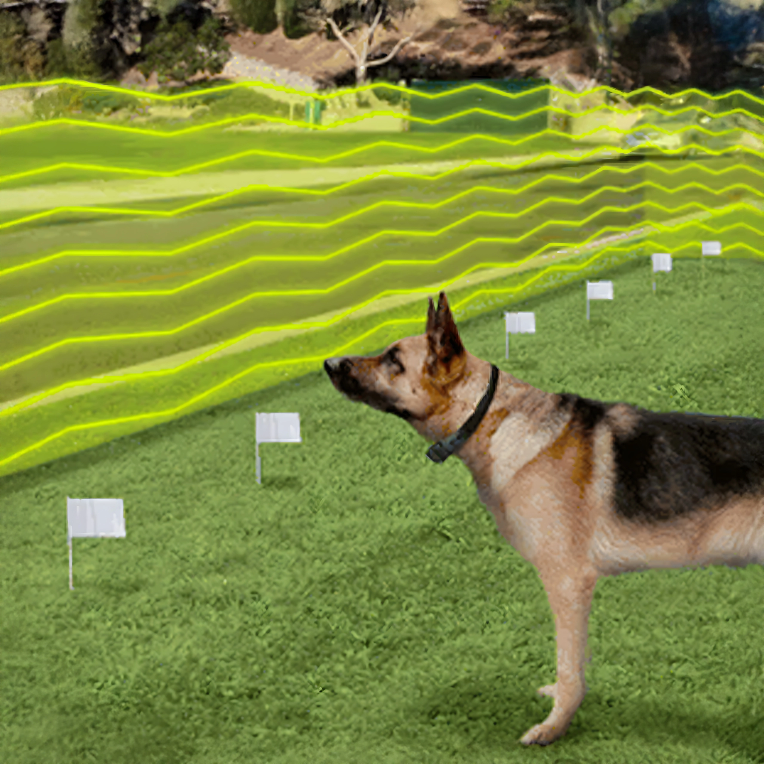 À l’aide du fil, vous définissez des limites invisibles. Les fanions aident à l’entraînement et votre compagnon comprend rapidement où il est sûr de rester.