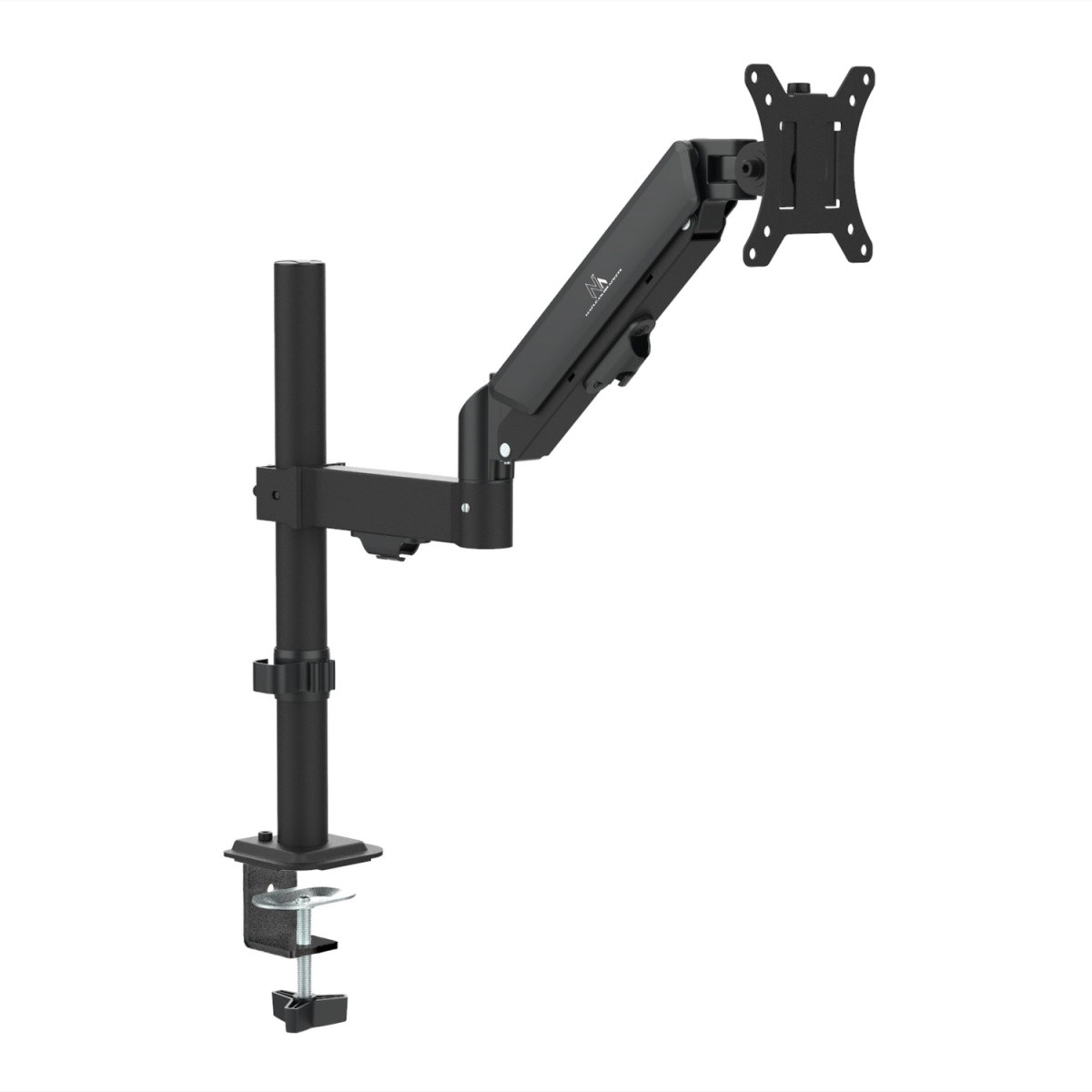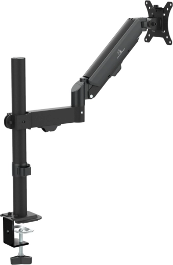 Le vérin à gaz intégré permet d’ajuster rapidement et précisément la hauteur du moniteur d’un seul geste, sans desserrer de vis, avec une stabilité parfaite dans la position choisie.
