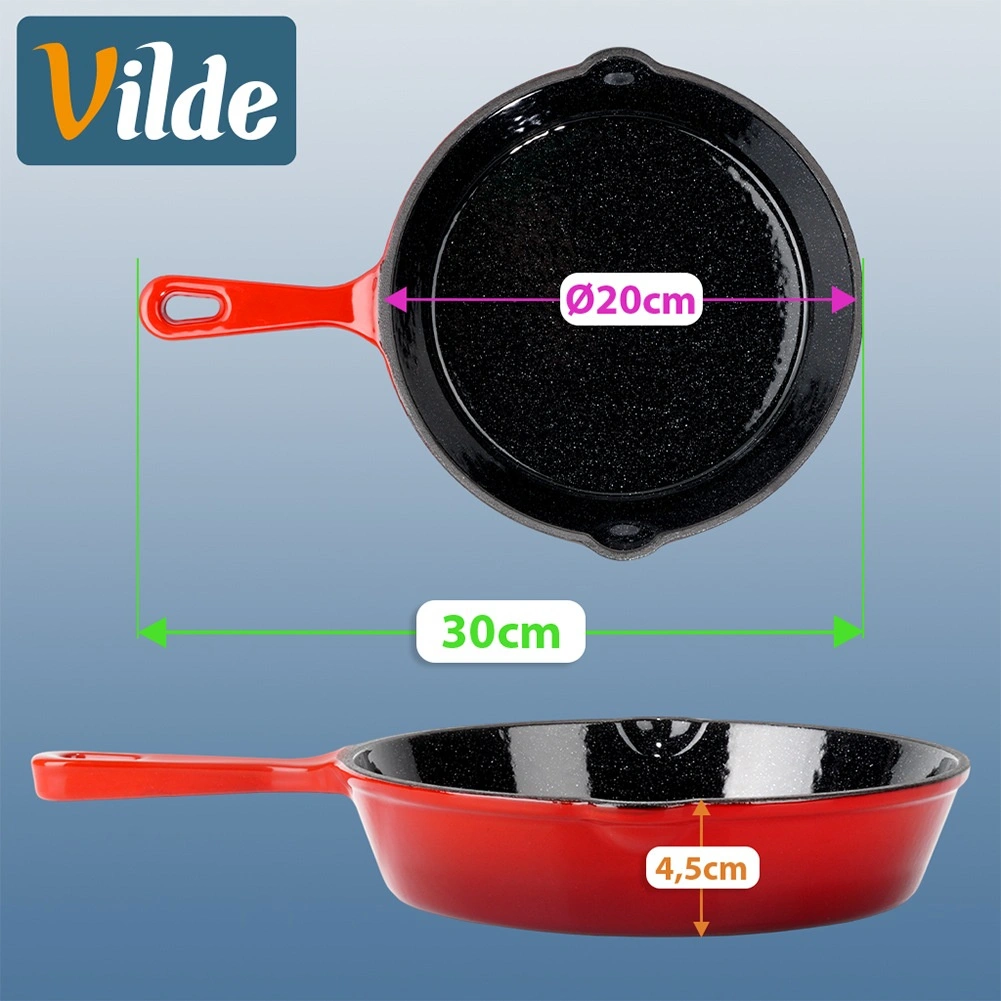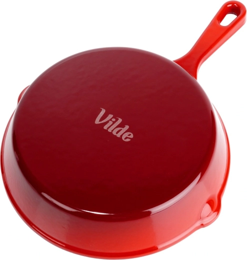 Son utilisation polyvalente en cuisine, sur le gril et même au feu de bois en fait un excellent compagnon à la maison comme en déplacement. Sa construction solide et son design intemporel en rouge soulignent la qualité de la marque VILDE de la ligne CAST ENAMEL.