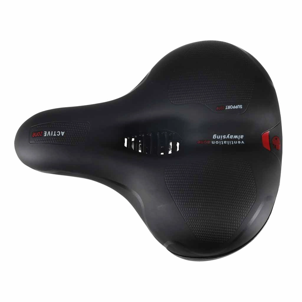 Profitez d’un soutien stable et d’un grand confort sur les trajets courts comme sur les longues sorties. La selle avec mousse PU hautement élastique et ressorts en acier absorbe efficacement les chocs et les vibrations sur les surfaces irrégulières. Le canal central anatomique réduit la pression dans les zones sensibles et favorise la circulation de l’air.