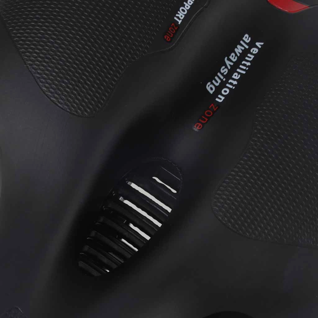 Le canal de ventilation central soulage la pression dans les zones sensibles et améliore le flux d’air pour un confort accru lors des trajets plus longs.