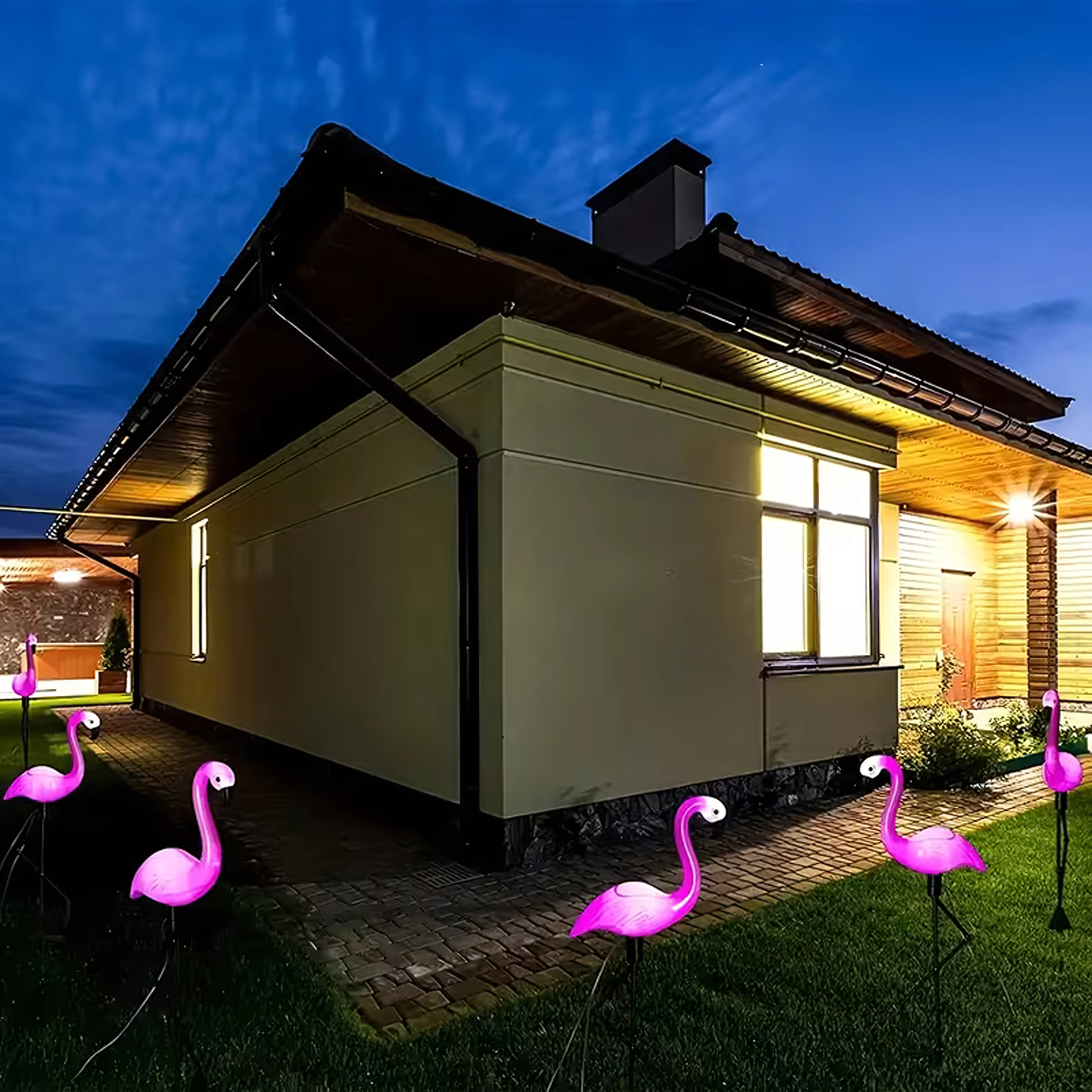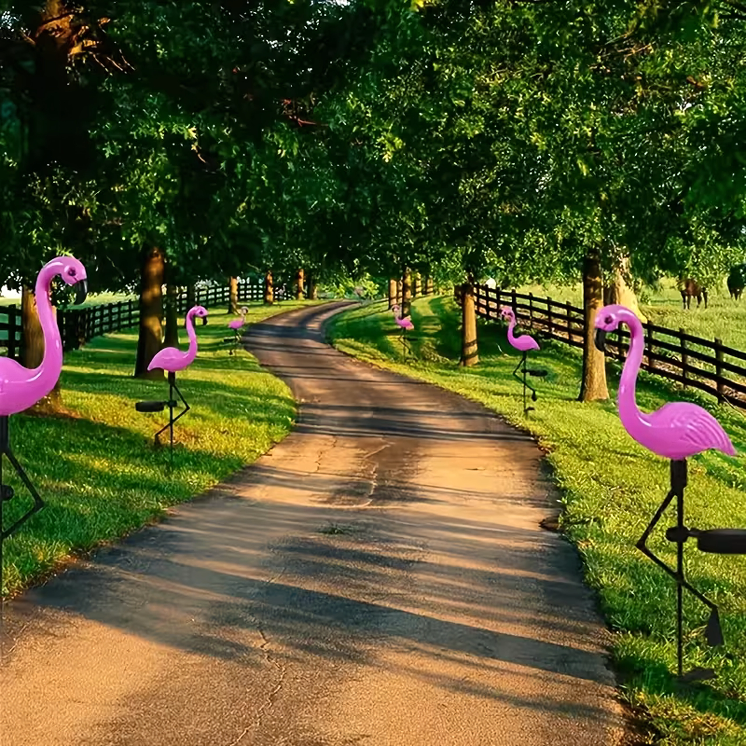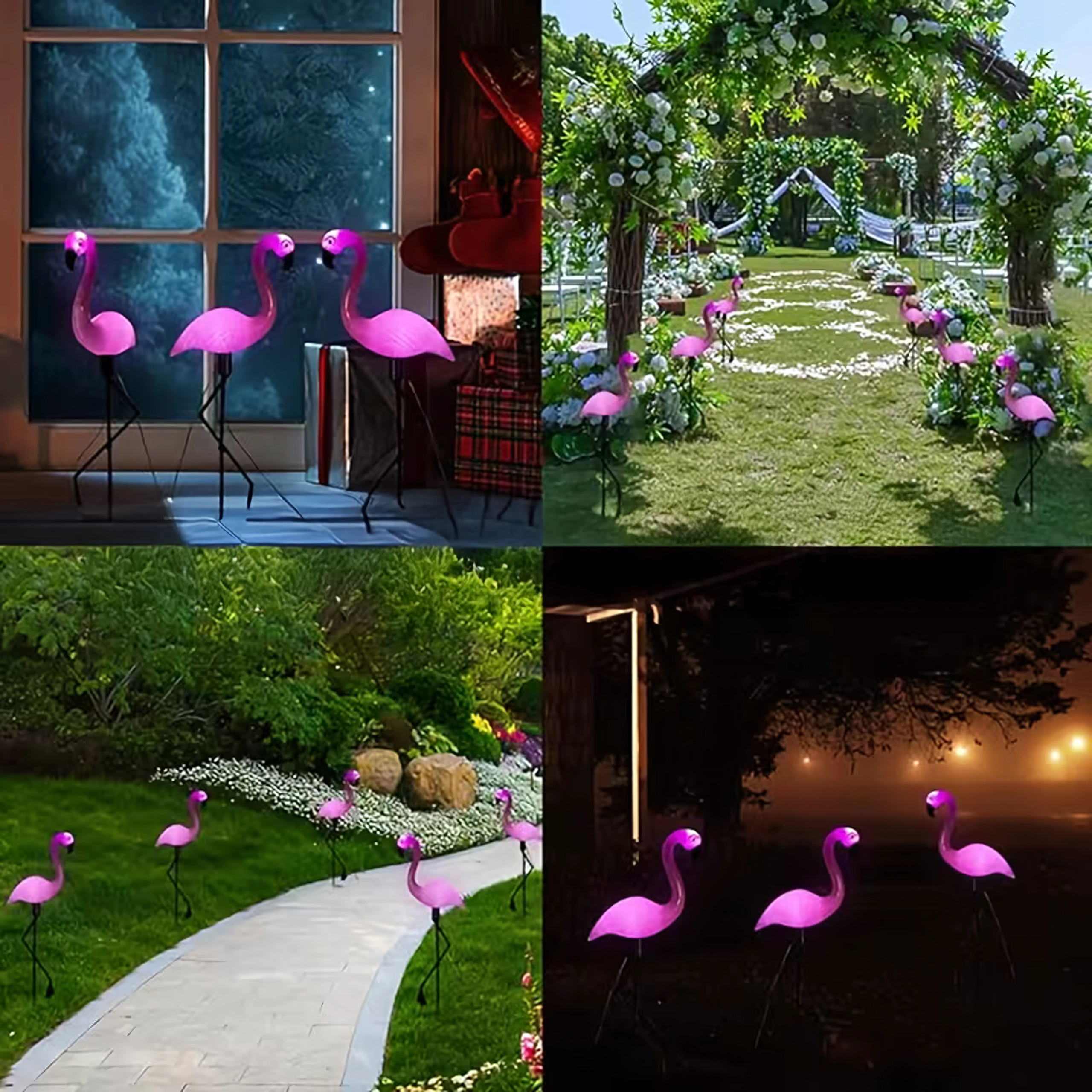 La lumière rose vive des flamants ressort magnifiquement le long des trottoirs, des allées et dans les parterres d’ornement.