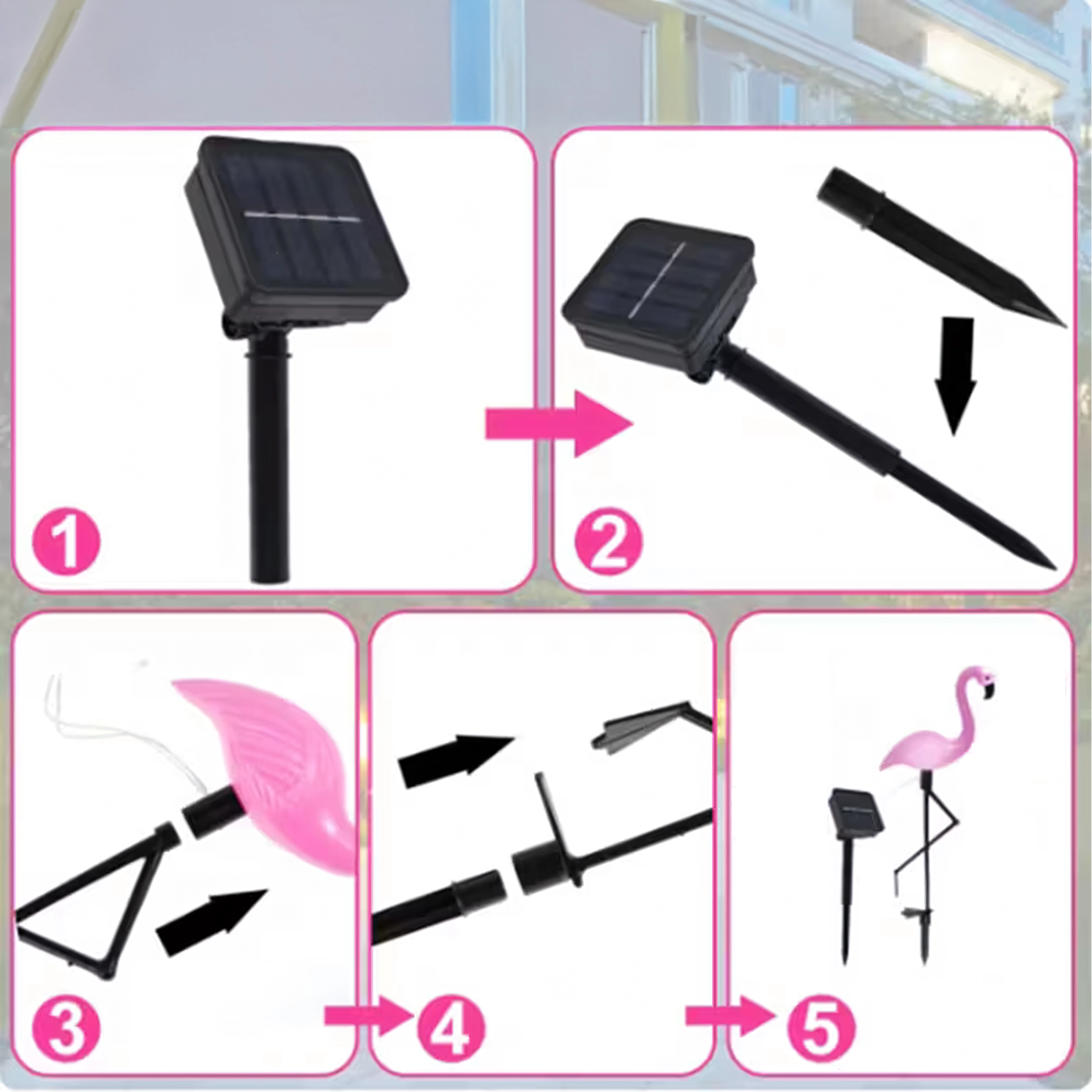 Illuminez votre jardin avec une décoration stylée – lampe LED solaire en forme de flamant rose d’une hauteur de 53 cm. Elle offre un éclairage nocturne automatique, une installation simple dans le sol et une résistance aux intempéries. Idéale pour les allées, massifs et terrasses.