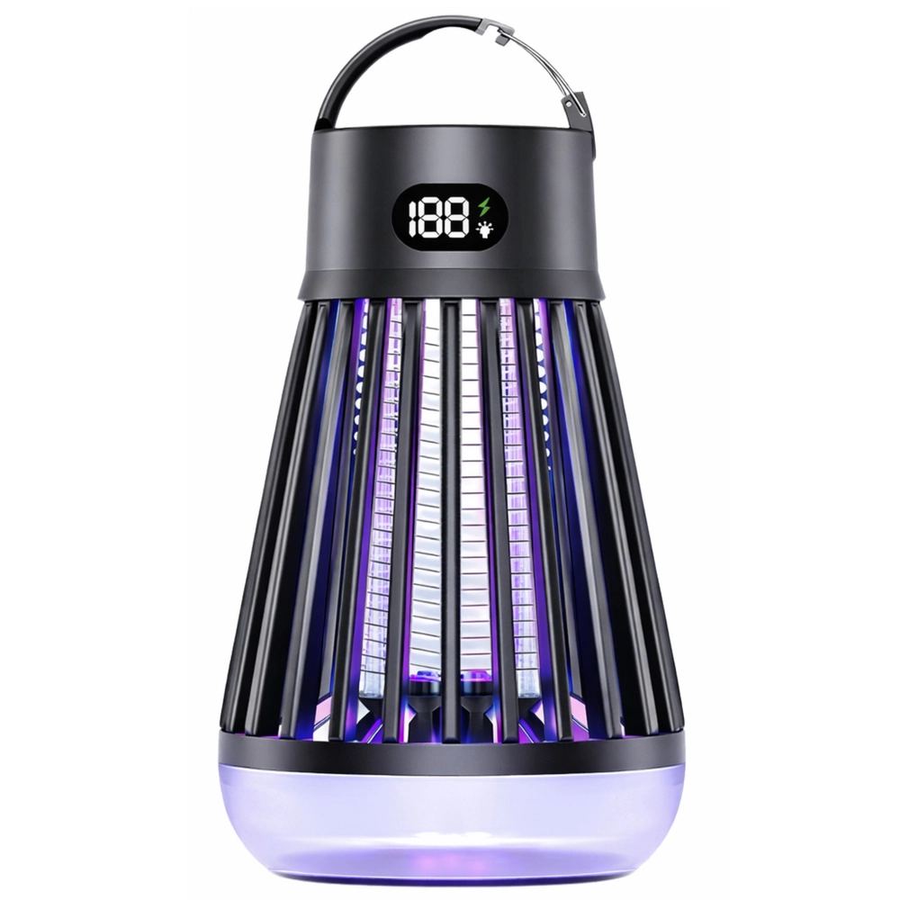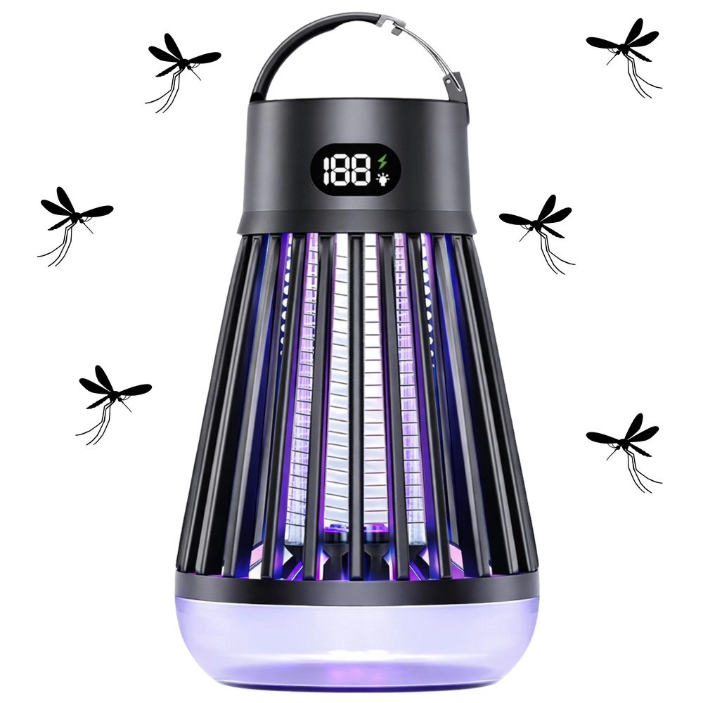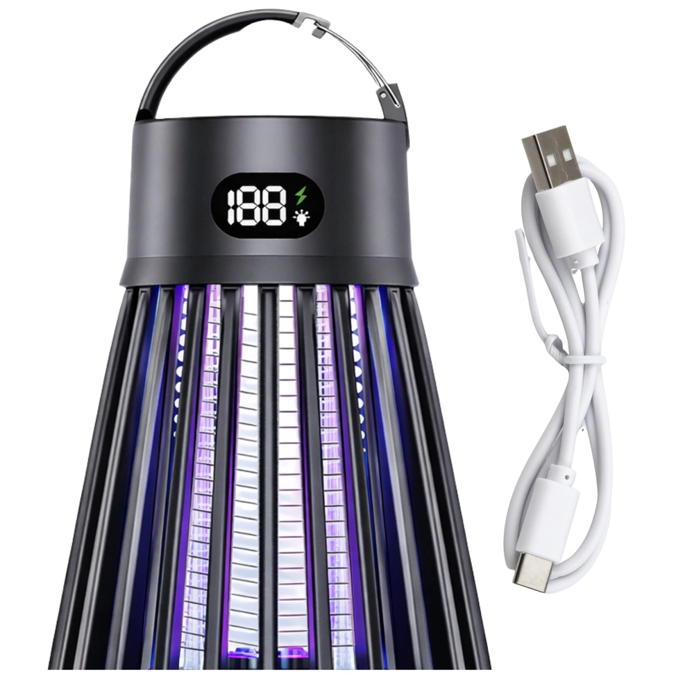 Lampe anti-moustiques et insectes volants pratique et moderne, combinant attraction UV (365/395/410 nm) et grille électrique 2000 V pour une élimination rapide. Grâce à la lampe LED intégrée, à la batterie rechargeable 2000 mAh offrant jusqu’à 9 heures d’autonomie et à la recharge USB‑C, elle est idéale pour la maison, la terrasse, le balcon et le camping. Sans produits chimiques, avec grille de protection et écran numérique clair de l’état.
