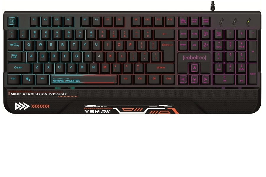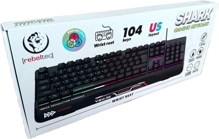 Découvrez le REBELTEC SHARK – un outil fiable pour les joueurs comme pour les utilisateurs exigeants. Le repose-poignets intégré réduit la fatigue lors de longues sessions, tandis que la construction résistante à l’eau avec canaux d’évacuation protège le clavier contre les éclaboussures accidentelles. Le rétroéclairage RVB des touches améliore la lisibilité dans l’obscurité et apporte un style moderne à votre bureau.