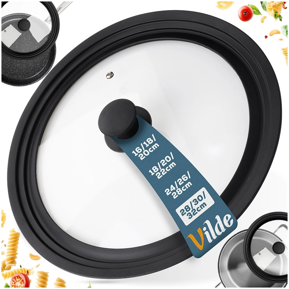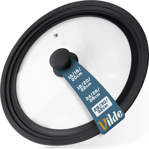 Couvercle universel en verre 3‑en‑1 pour casseroles et poêles de 28, 30 et 32 cm, qui fait gagner de la place et de l’argent. Il possède un verre trempé résistant, un large bord en silicone pour une assise étanche et la protection des bords des ustensiles, un orifice d’évacuation de la vapeur et une poignée ergonomique. Il est compatible lave-vaisselle et permet de surveiller la cuisson sans soulever le couvercle.