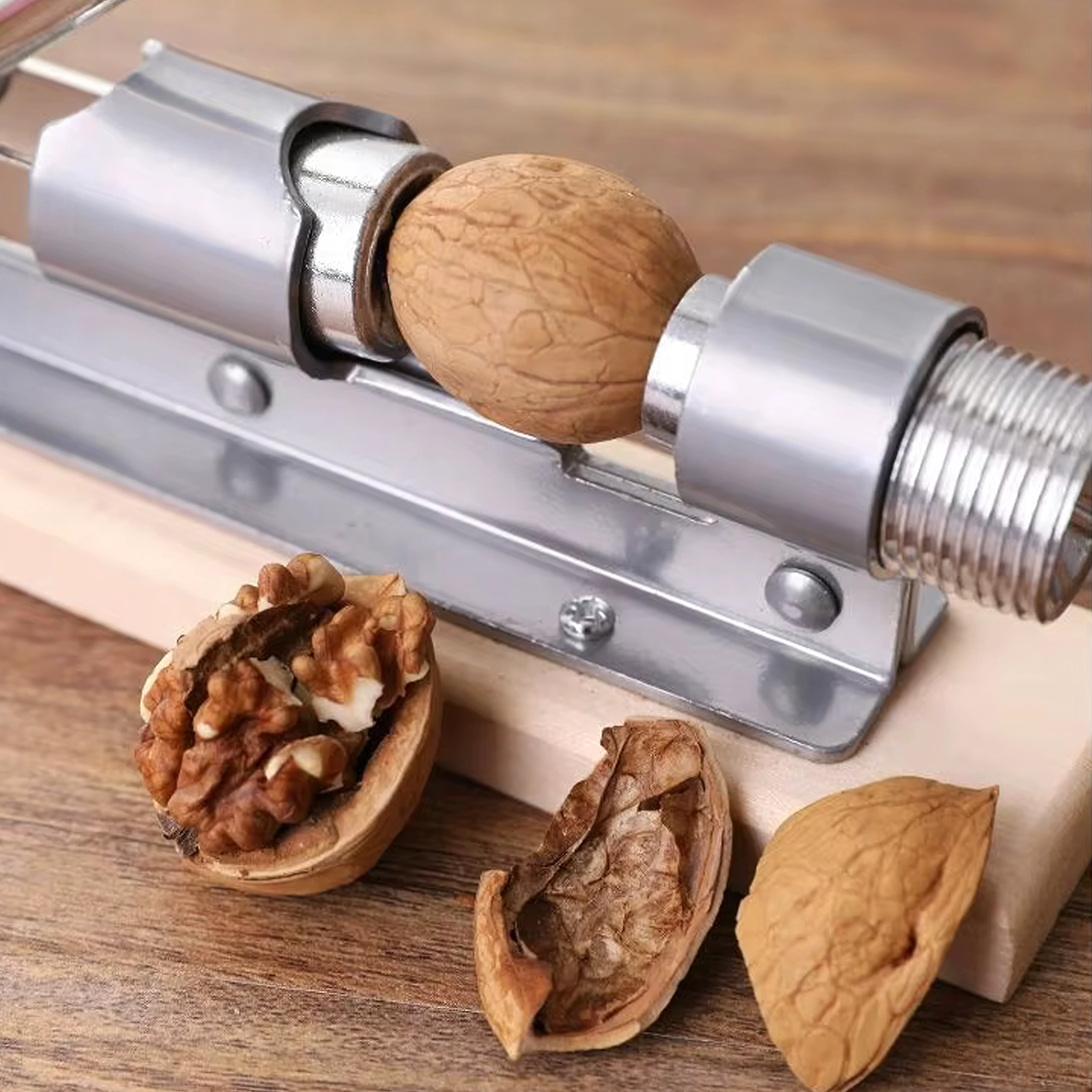 La tête réglable et les mâchoires métalliques résistantes gèrent les noix, noisettes, amandes, pistaches, noix de macadamia ainsi que les carapaces de crabes.