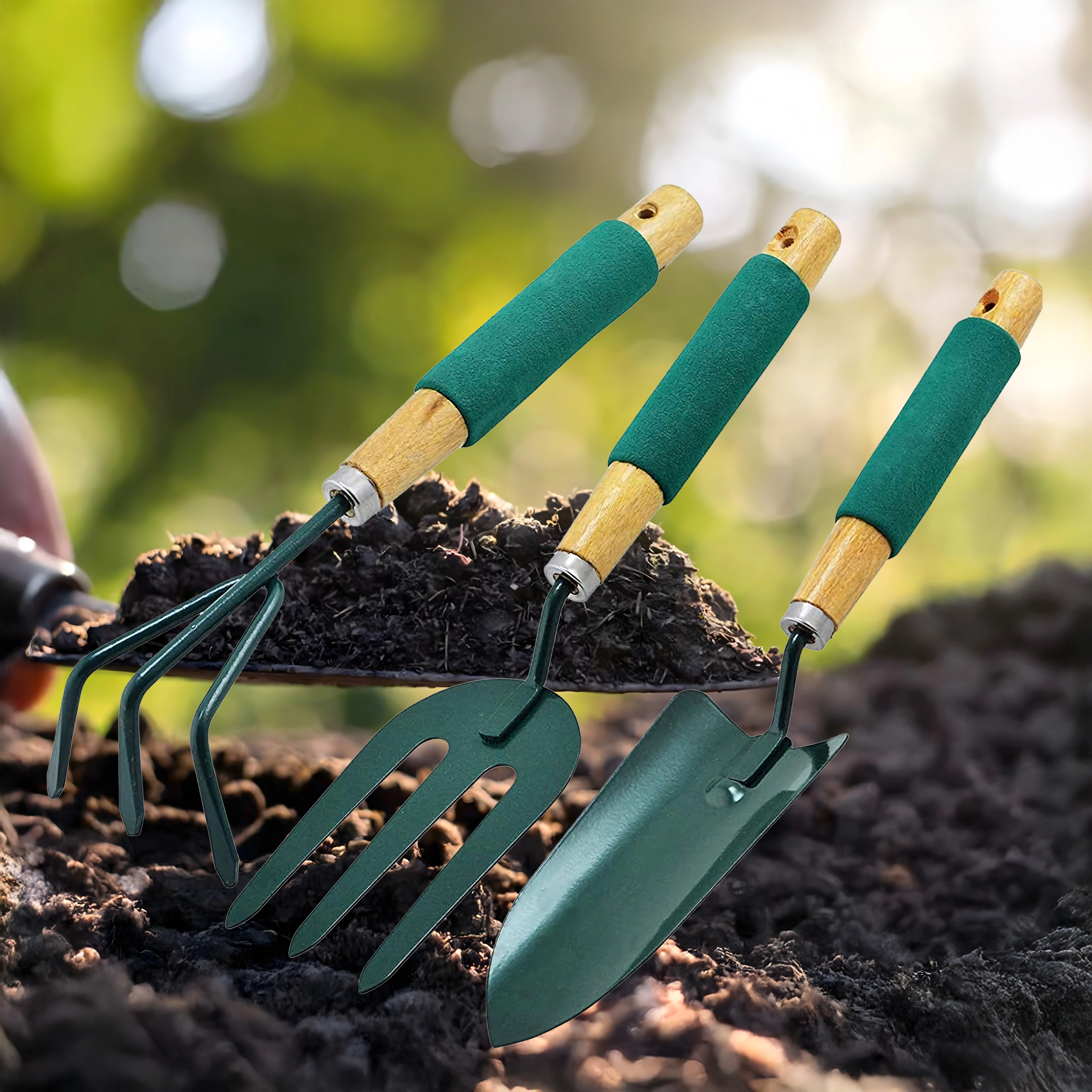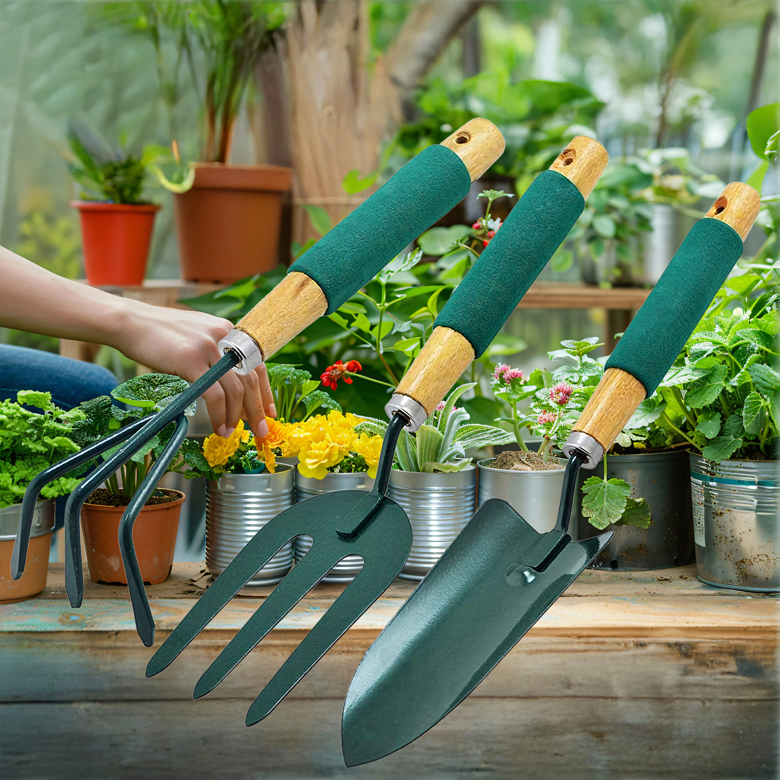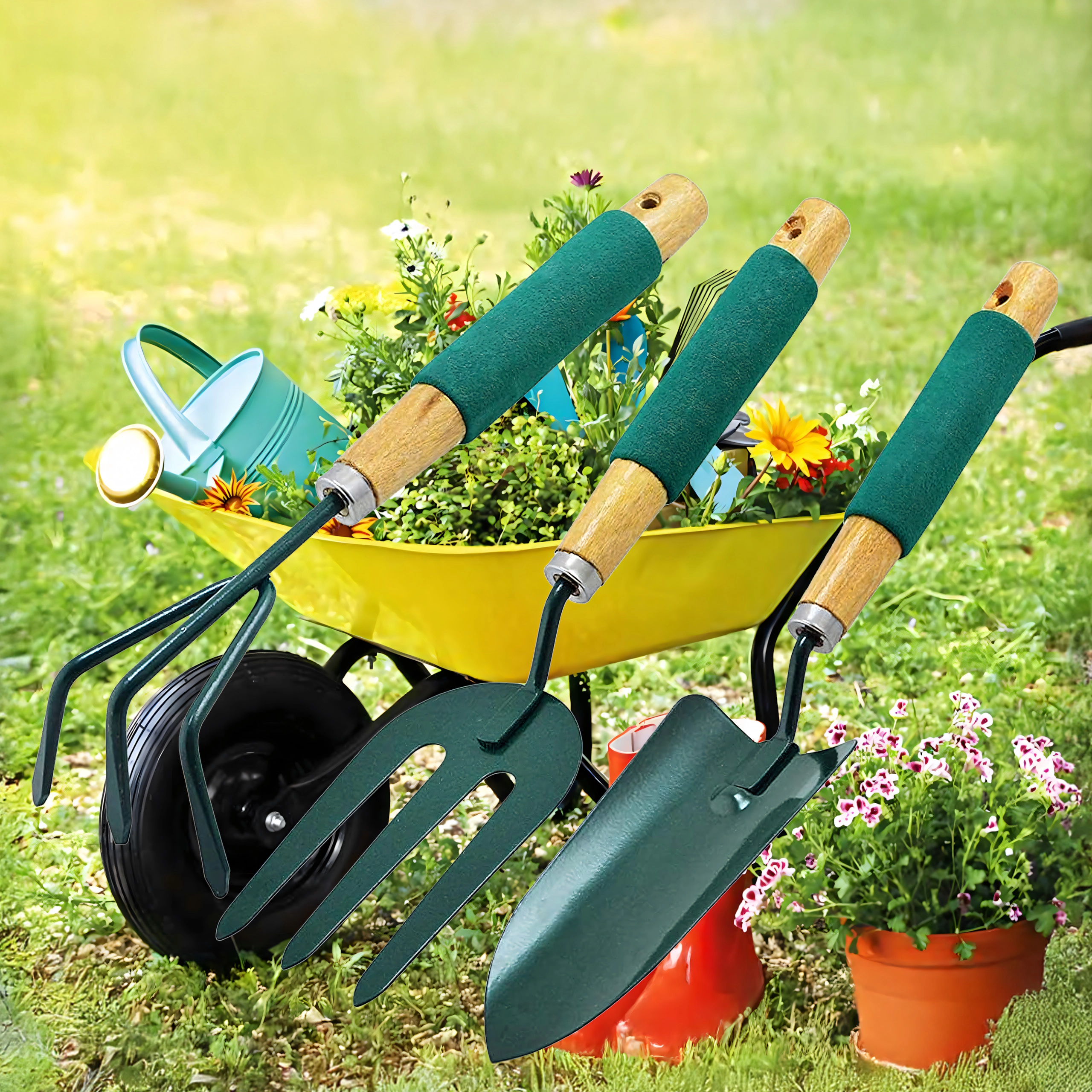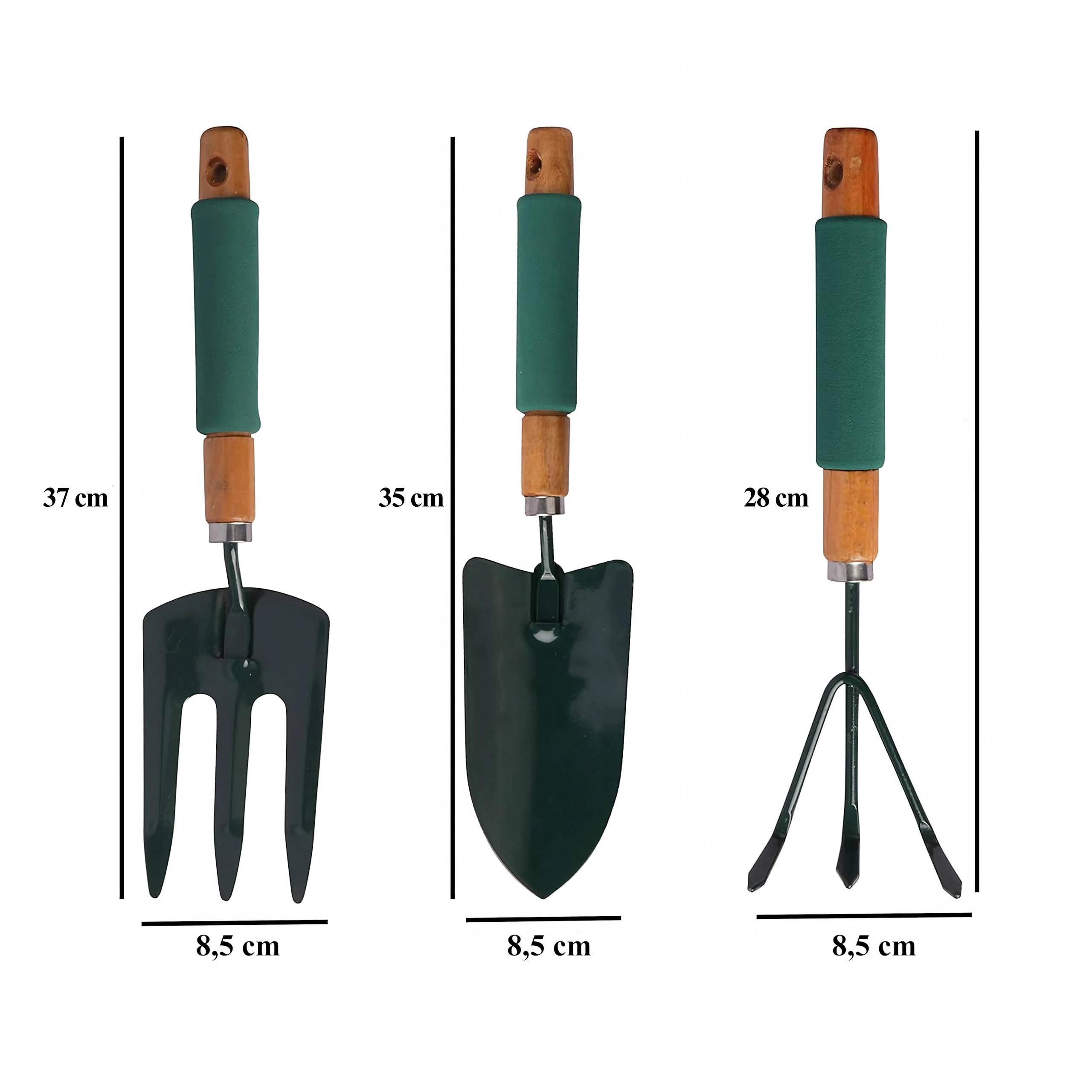 - 3 (pelle, cultivateur/mini râteau, fourche de jardin)