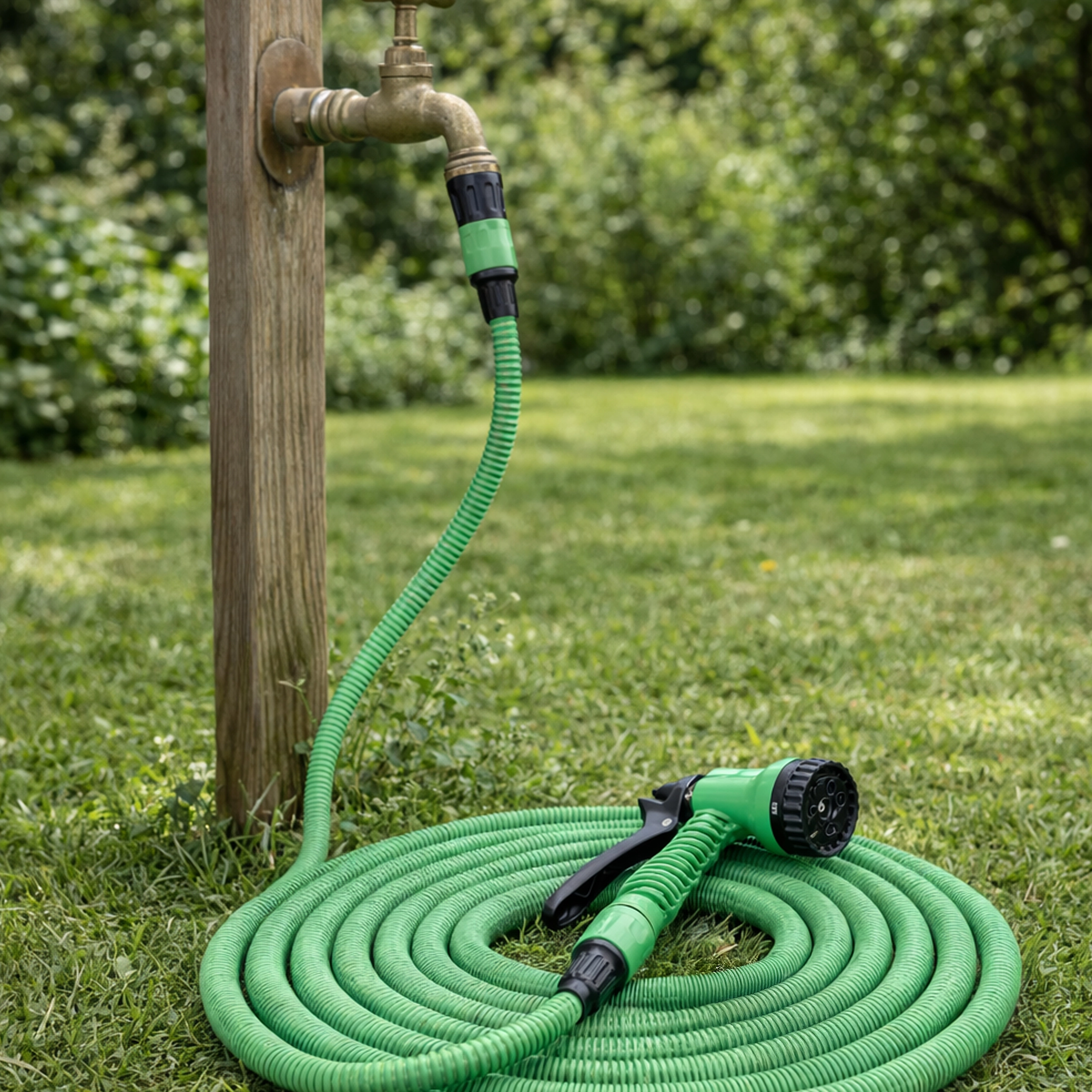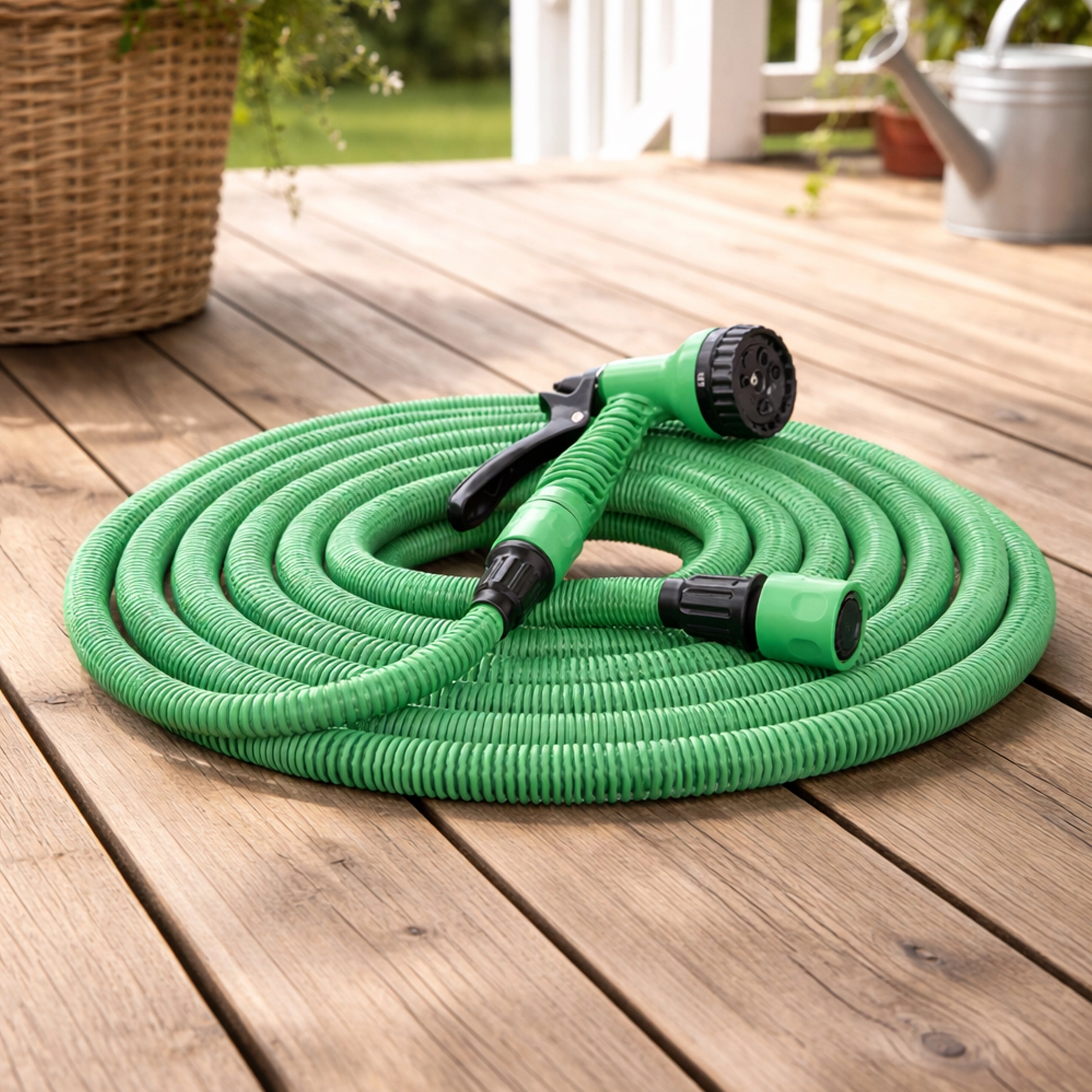 Les raccords rapides assurent une connexion rapide et étanche au robinet extérieur et aux accessoires. Le tuyau est parfait pour l’arrosage des fleurs et des pelouses, le rinçage des outils de jardin et le lavage de la voiture. Son faible poids et sa flexibilité garantissent une manipulation et un rangement faciles, même dans les petits espaces.