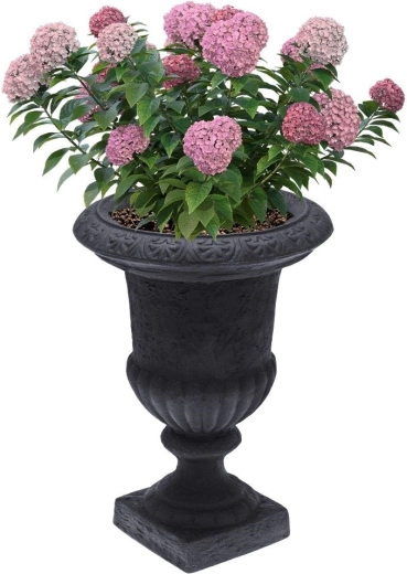 Sa forme ornementale avec rebord évasé et pied offre un cadre élégant aux plantes et rehausse l’esthétique de tout espace extérieur.