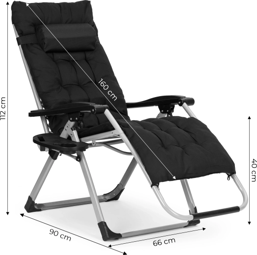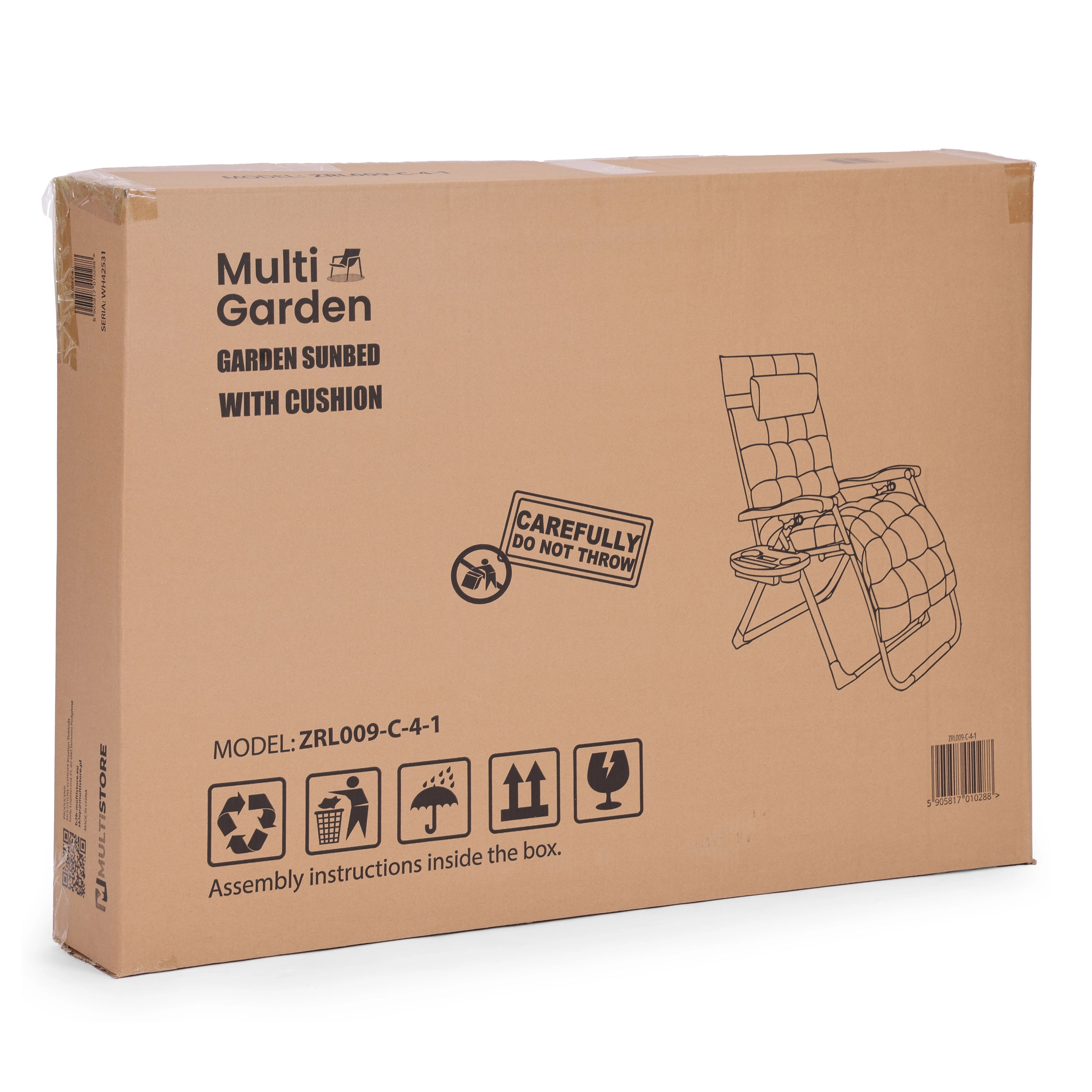 Profitez d’un repos parfait au jardin, sur la terrasse ou au bord de la piscine avec le confortable transat MultiGarden. Il offre la technologie Zero Gravity pour détendre tout le corps, un dossier réglable, une structure pliante pour un transport facile et un cadre en acier résistant avec peinture époxy. Pour un confort maximal, il est équipé d’un coussin moelleux avec appui-tête et d’un plateau latéral pour boisson et téléphone. Charge maximale 120 kg.