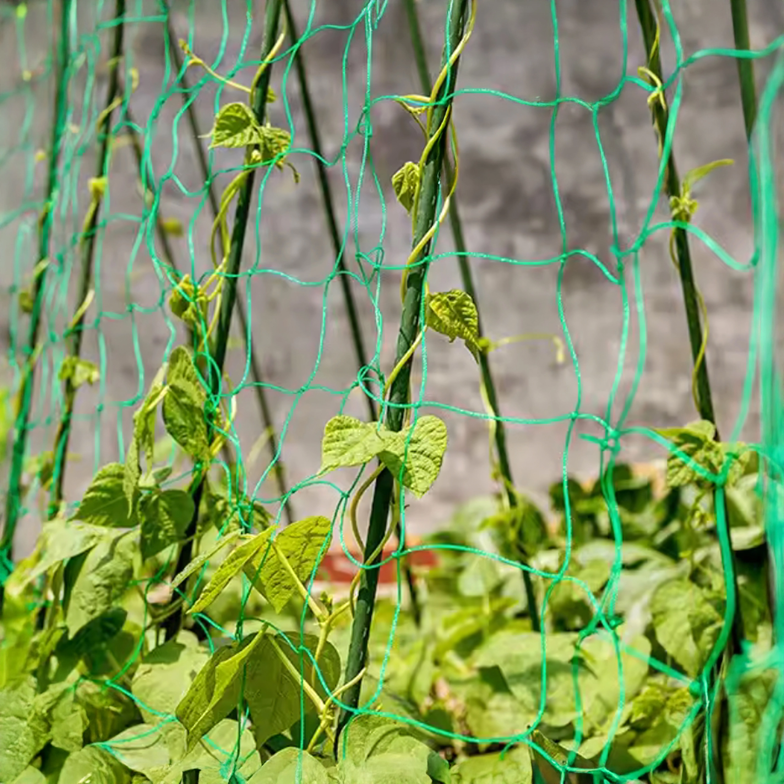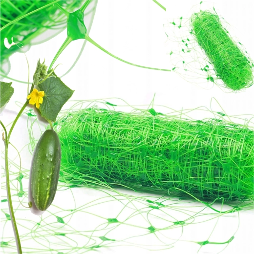 L’installation est simple – le filet peut être raccourci librement, fixé à des supports ou à une structure de serre, et les tiges peuvent y être attachées progressivement. Il est idéal pour les concombres, haricots, pois, tomates et les plantes grimpantes ornementales. La maille serrée fournit de nombreux points d’appui pour l’enroulement naturel des tiges.