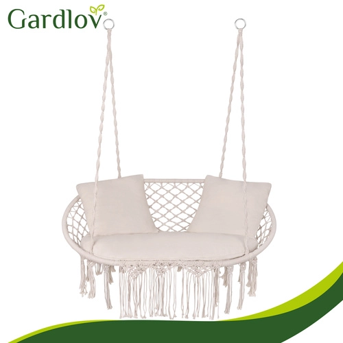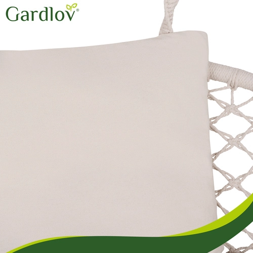 La grande assise accompagnée de deux coussins moelleux offre un soutien du dos et de la tête, pour profiter pleinement de vos moments de détente dans le fauteuil suspendu.
