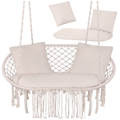 Profitez du confort au jardin comme à la maison avec les coussins GARDLOV pour fauteuil suspendu type nid de cigogne pour 2 personnes. L’ensemble comprend une grande assise et deux coussins moelleux offrant un soutien du dos et de la tête. Grâce à un rembourrage épais et élastique, les coussins s’adaptent au corps, sont faciles à entretenir et, dans une élégante couleur crème, s’intègrent à tous les styles.