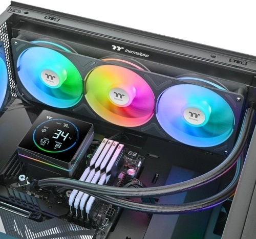 THERMALTAKE TH360‑S V3 ARGB apporte un refroidissement CPU efficace avec un radiateur de 360 mm et un trio de ventilateurs 120 mm à éclairage RGB adressable. La tête de pompe angulaire avec écran LCD segmenté affiche les métriques clés, tandis que le capot supérieur rotatif et amovible permet un alignement parfait dans n’importe quelle orientation.
