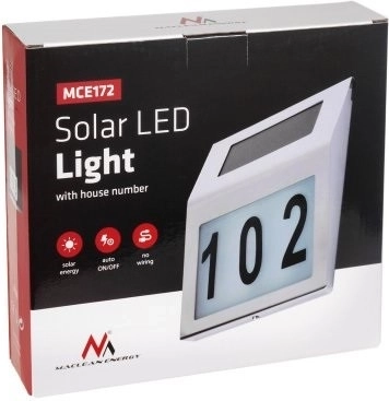 L’éclairage solaire pour numéro de maison MACLEAN ENERGY MCE172 combine un look moderne et une fonctionnalité pratique. Le panneau solaire intégré recharge en journée l’accumulateur de 600 mAh et, à la nuit tombée, active une LED lumineuse pour une parfaite lisibilité du numéro depuis la rue. Idéal pour l’identification d’adresses de maisons individuelles, chalets ou locaux commerciaux.