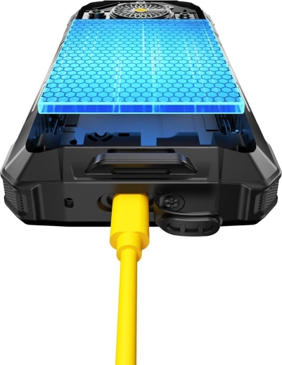 À l’intérieur, un MediaTek Helio G100 octa‑cœur fonctionne avec 12 Go de RAM pour un multitâche serein. L’espace de données est assuré par 512 Go avec possibilité d’extension jusqu’à 2 To via microSD. L’énorme batterie de 25 500 mAh maintient le téléphone en service pendant plusieurs jours et la charge rapide 66 W réduit le temps passé à la prise.