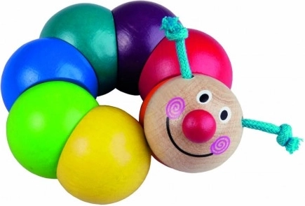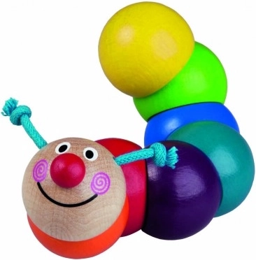 Une chenille en bois colorée composée de perles enfilées sur un élastique favorise le développement de la motricité fine dès 6 mois. Elle est sans danger pour la santé, conforme aux normes de l’UE et, grâce à sa longueur compacte de 13 cm, tient parfaitement même dans les petites mains.