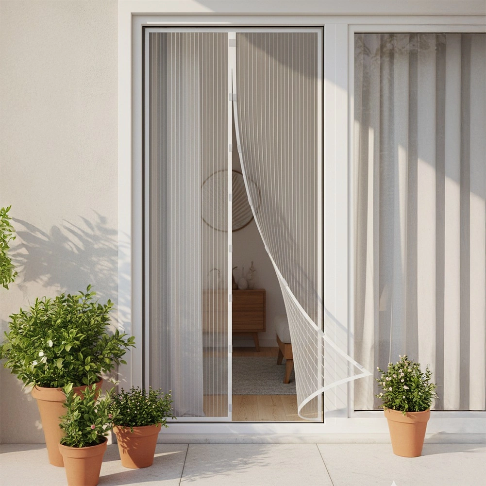 L’installation est rapide et sans outils : il suffit de coller le ruban auto-agrippant sur le cadre de la porte ou d’utiliser les punaises fournies pour les cadres en bois. Sa conception légère permet un passage mains libres pour les adultes, les enfants et les animaux de compagnie, et les aimants se referment immédiatement après le passage.
