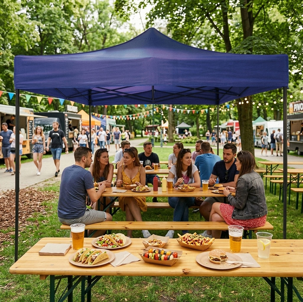 Grâce à des dimensions bien pensées, il s’adapte précisément à la plupart des tentes et pavillons de jardin 3 × 3 m. Haute résistance à l’humidité et entretien facile garantissent une longue durée de vie même en usage fréquent durant la saison. La finition bleue s’intègre parfaitement au jardin, sur la terrasse et pour les événements en plein air.