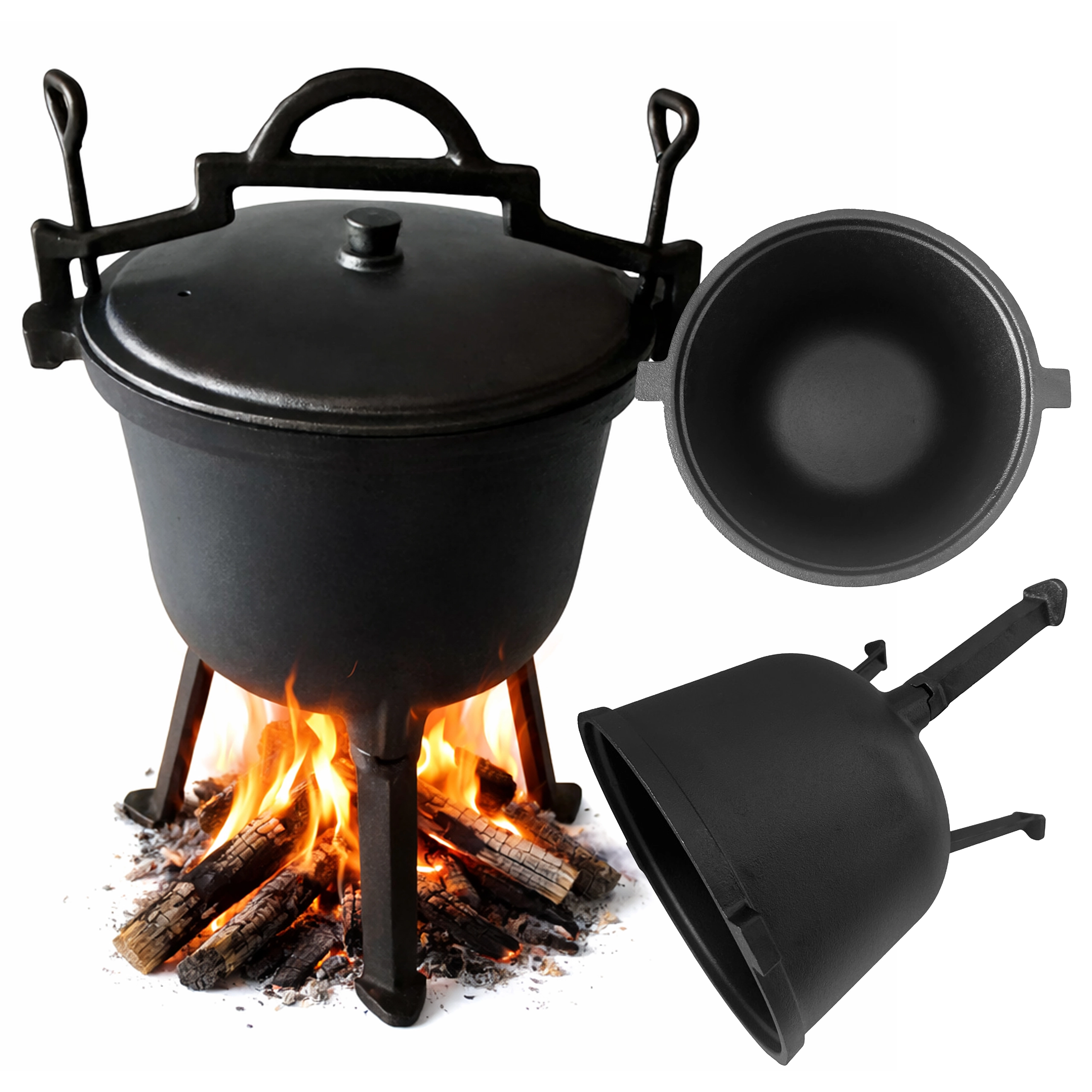 La base stable à trois points permet de placer le chaudron directement dans le foyer ou au-dessus des braises. C’est un excellent choix pour le camping, les réceptions au jardin et les sorties de pêche. La fonte est naturellement résistante et gagne en propriétés antiadhésives à chaque utilisation.