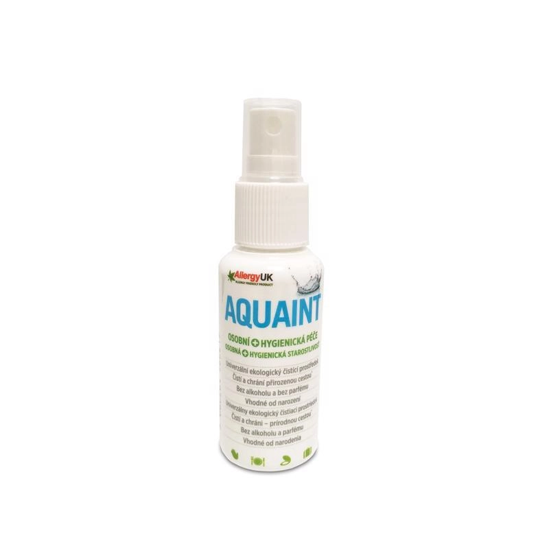 Aquaint est une eau nettoyante 100 % naturelle en pulvérisateur mécanique pratique, qui nettoie en toute sécurité les mains, la peau et les zones sensibles dès la naissance. Elle est inodore et sans goût, ne colle pas et ne laisse après usage que de l’eau pure à la surface. Convient pour l’hygiène quotidienne à la maison, en voyage et à l’extérieur.