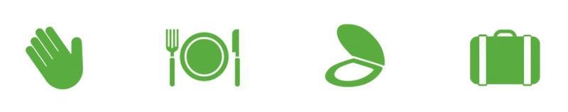 Mains, peau, bouche ; avant/après les repas, après les toilettes, en voyage