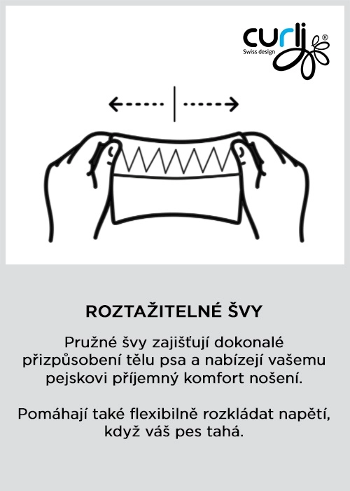 La zone du cou anatomiquement façonnée et les coutures élastiques répartissent la traction sur la poitrine, protègent la zone sensible du cou et ne limitent pas le mouvement naturel du chien.