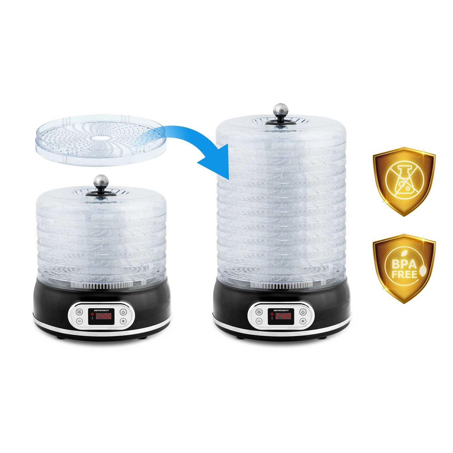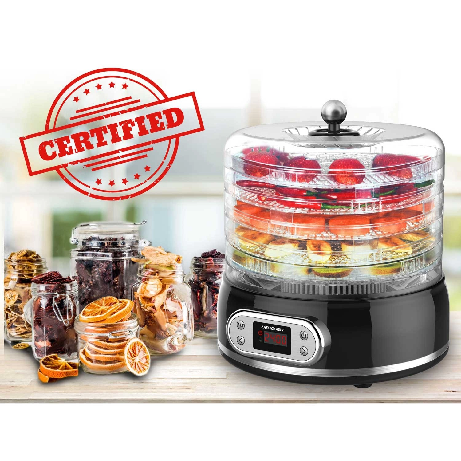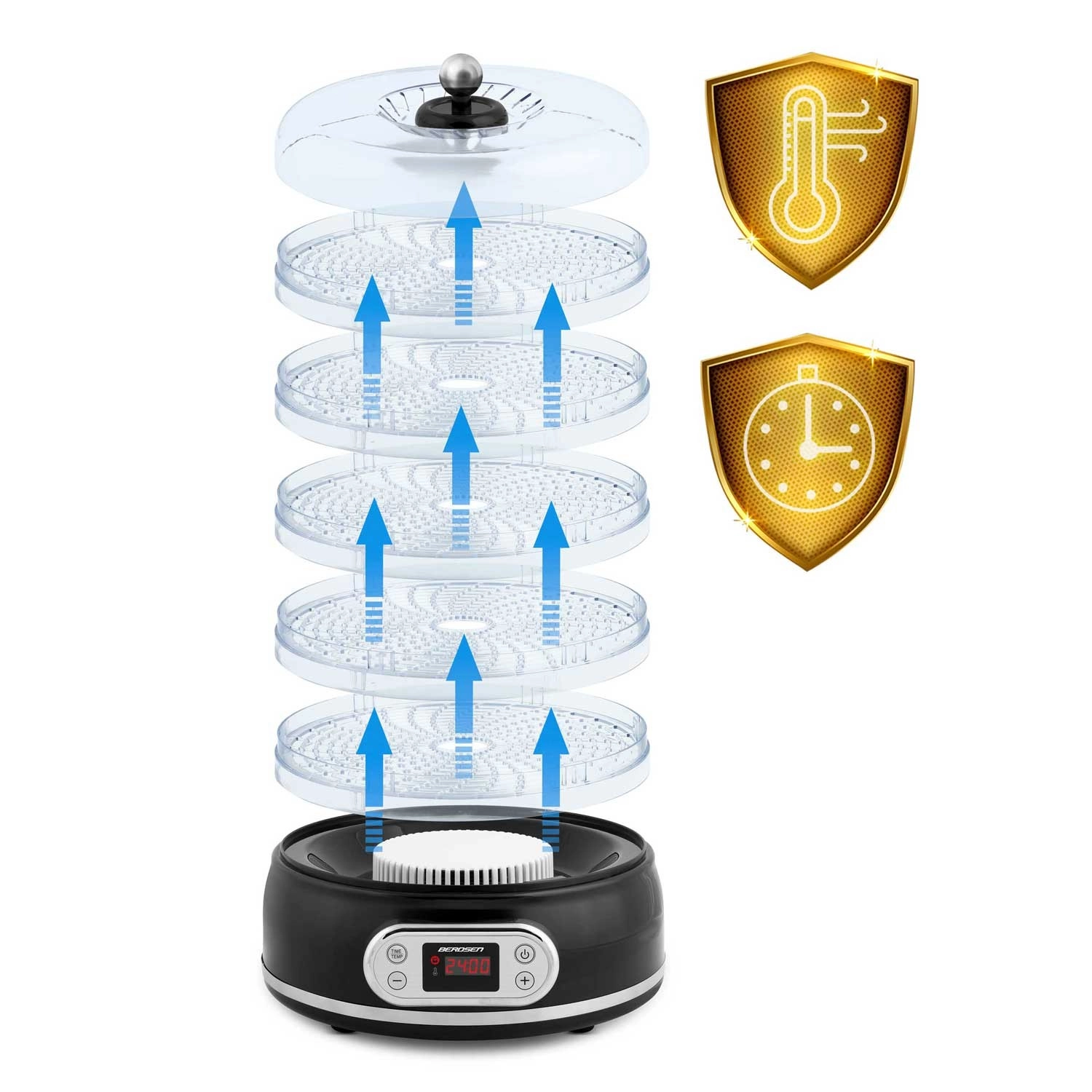 Déshydrateur alimentaire Berdsen, 10 l, 5 plateaux, noir