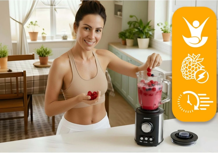Le blender de table BERDSEN performant, avec une capacité de 1,5 l et un moteur de 800 W, maîtrise smoothies, soupes et glace pilée. Il dispose d’un bol en verre, de lames en acier inoxydable et de 3 programmes automatiques – Smoothie, Ice Crush et Pulse. Vous apprécierez le panneau rétroéclairé, les pieds antidérapants, le nettoyage facile et les sécurités contre la surchauffe et le mauvais assemblage.