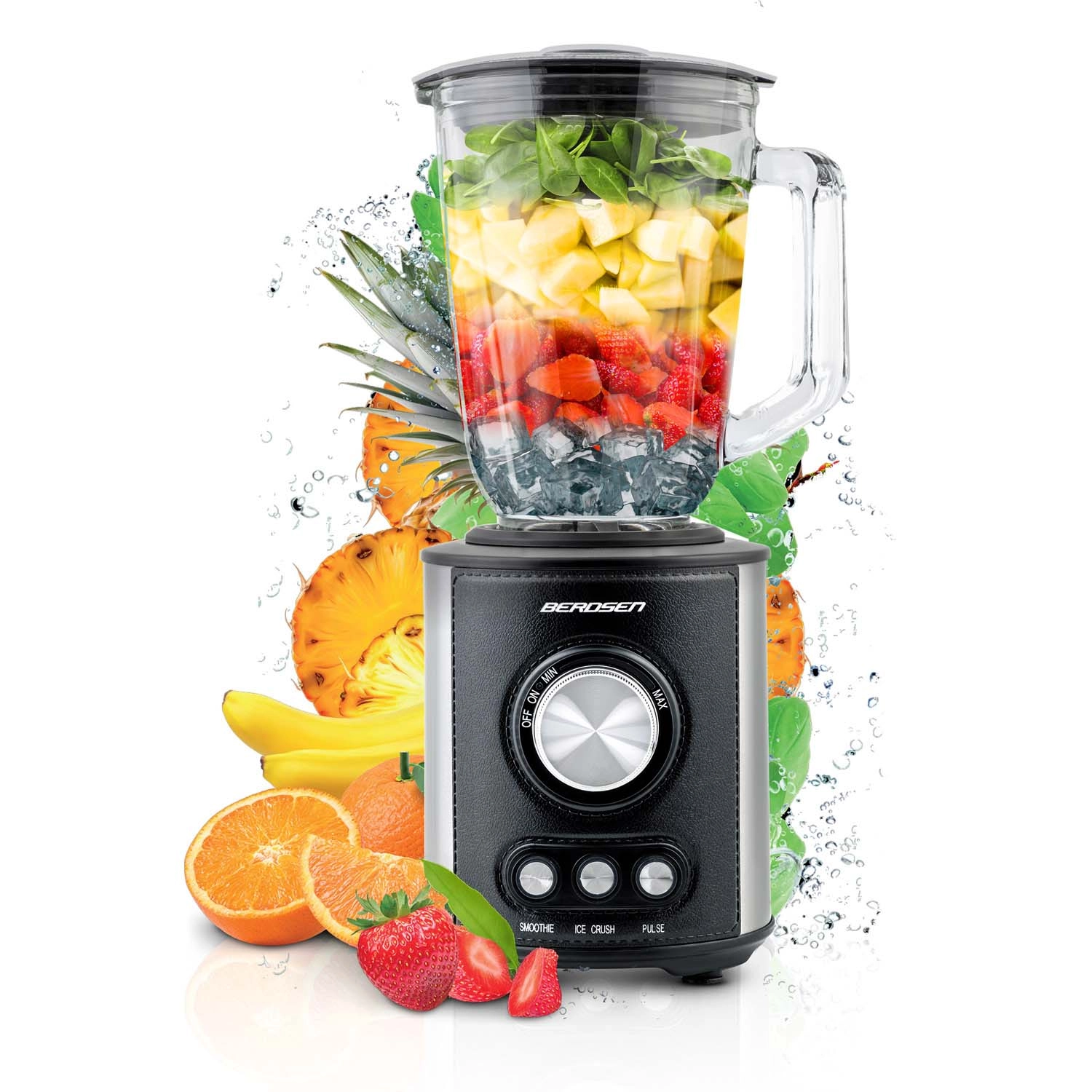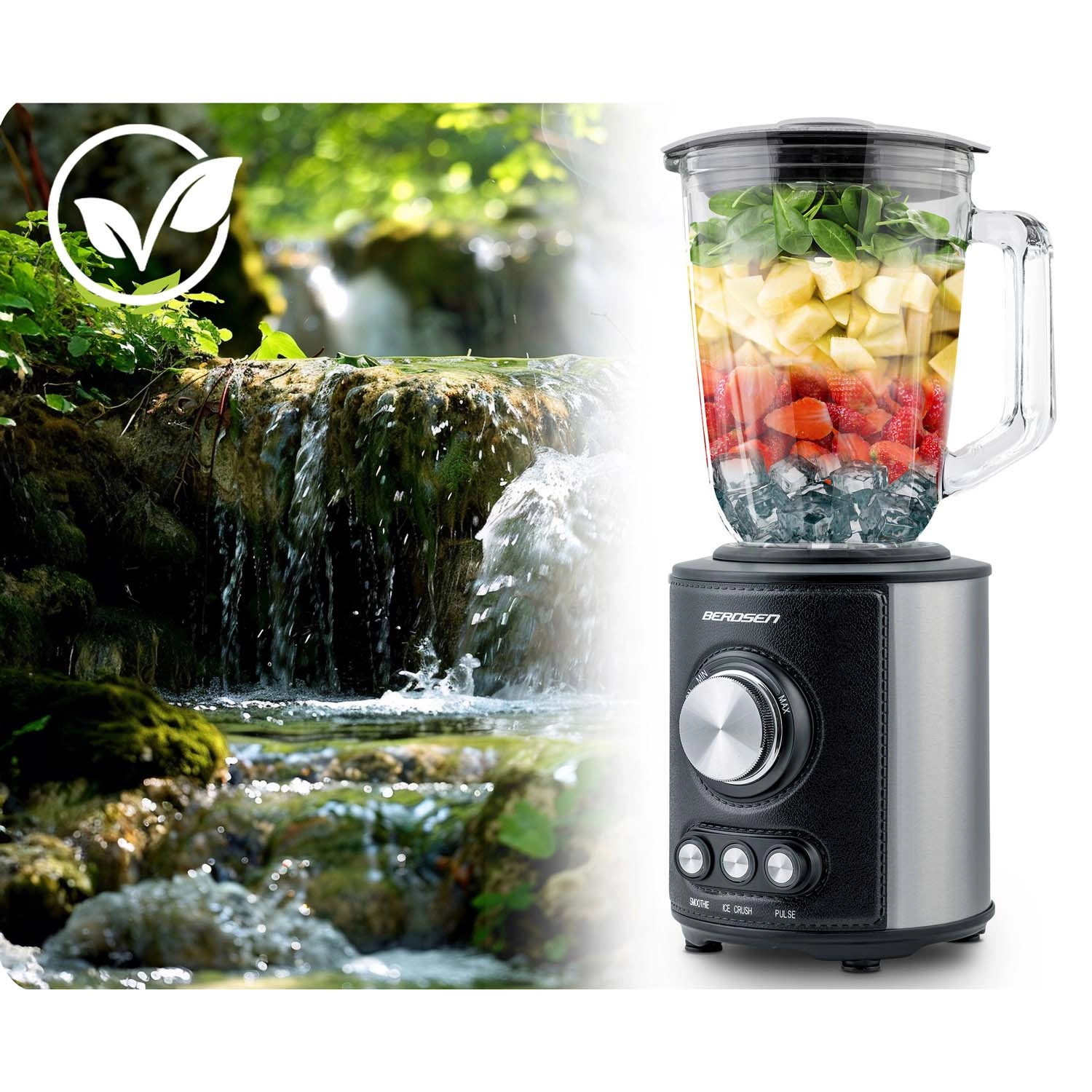 Le blender BERDSEN est un allié fiable pour une cuisine saine au quotidien. Son moteur puissant de 800 W et ses lames en acier inoxydable tranchantes viennent à bout des légumes durs, des noix et des glaçons. Le pichet en verre 1,5 l spacieux est durable, n’absorbe pas les odeurs et se nettoie facilement.