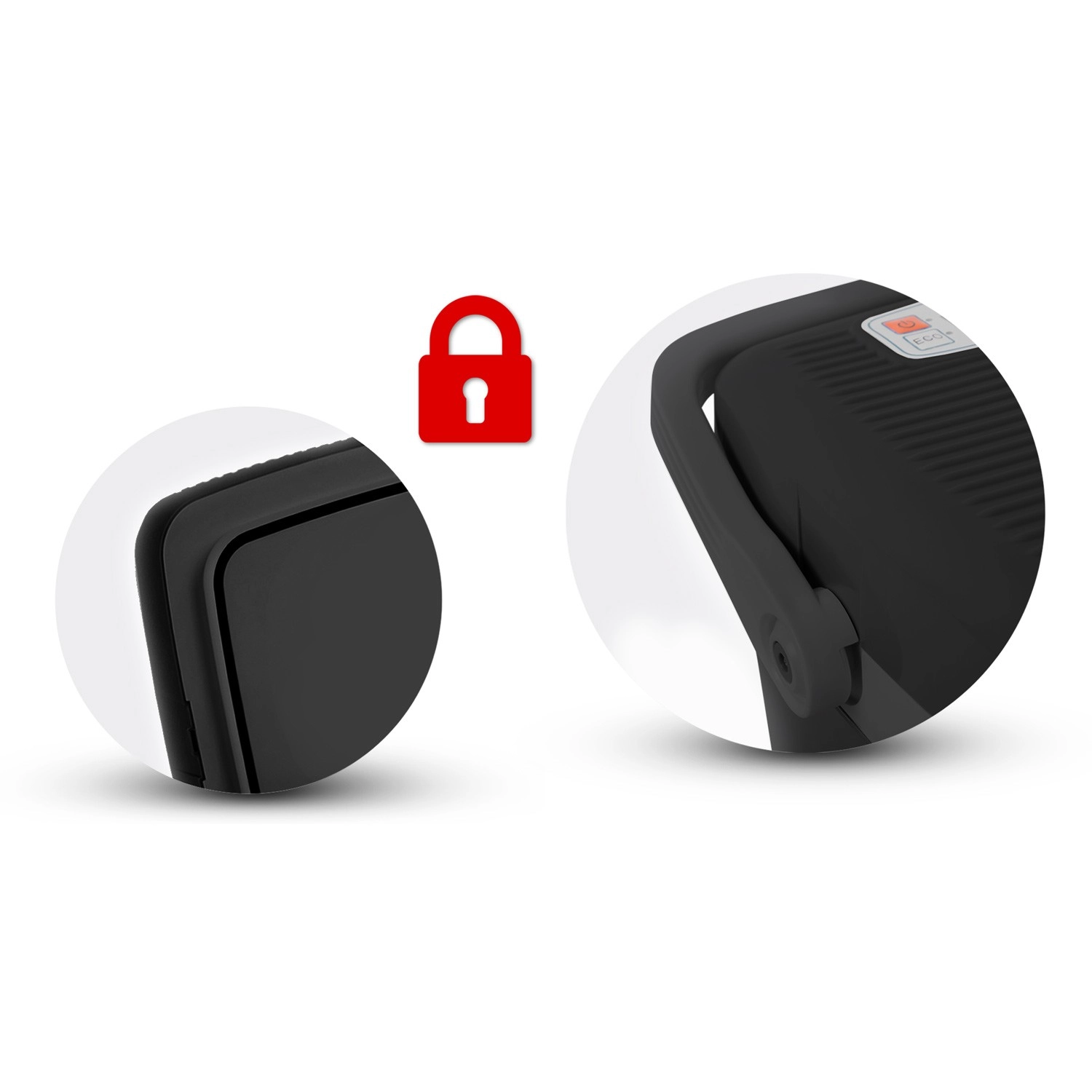 Le contrôle est intuitif via un panneau électronique avec réglage de la température. Alimentation 12 V en voiture et 230 V à la maison pour une flexibilité maximale, et port USB pour recharger le téléphone en route. Double isolation, joint de couvercle et ventilateur intégré maintiennent un climat interne stable. La poignée rabattable fait aussi office de loquet de couvercle et la grille de séparation amovible facilite le rangement organisé des aliments et boissons.
