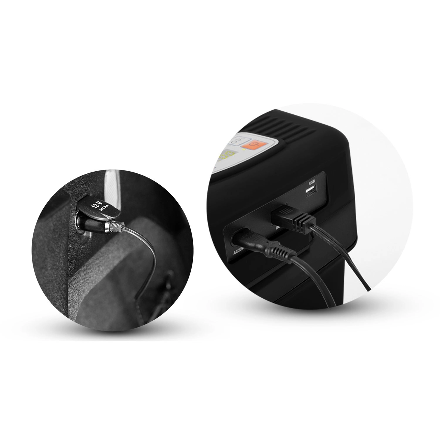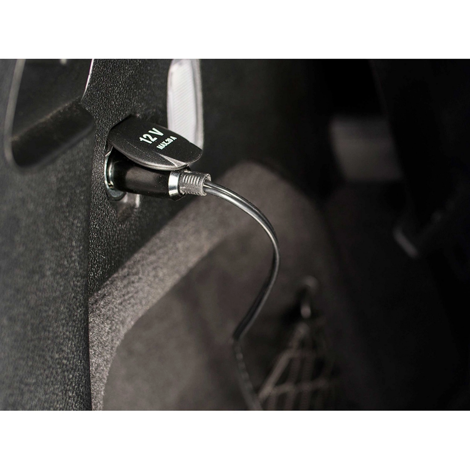 Branchez-la dans la prise 12 V de la voiture ou à la maison sur 230 V. Le port USB intégré permet de recharger votre téléphone ou votre GPS pendant le trajet.