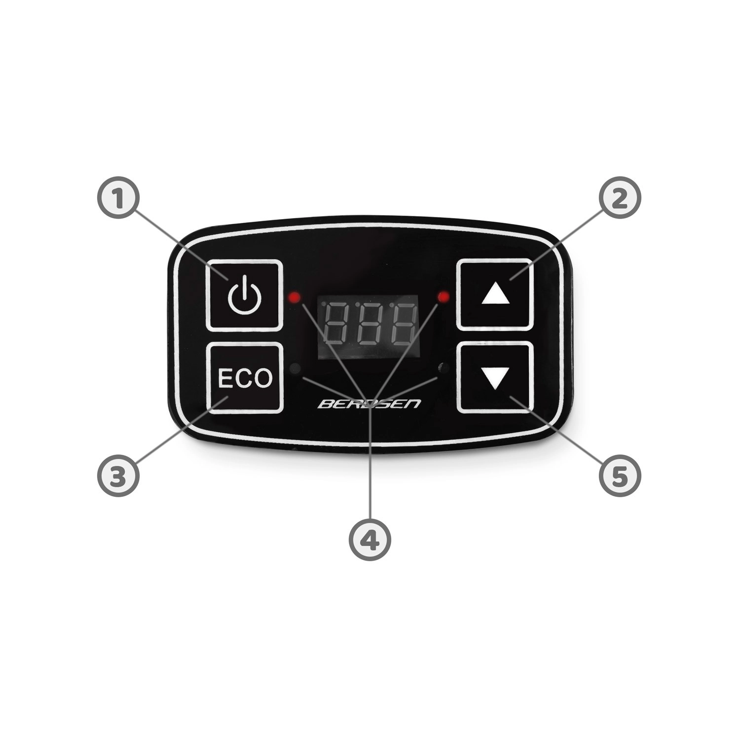- Mode ECO — économise automatiquement l’énergie une fois la température cible atteinte.