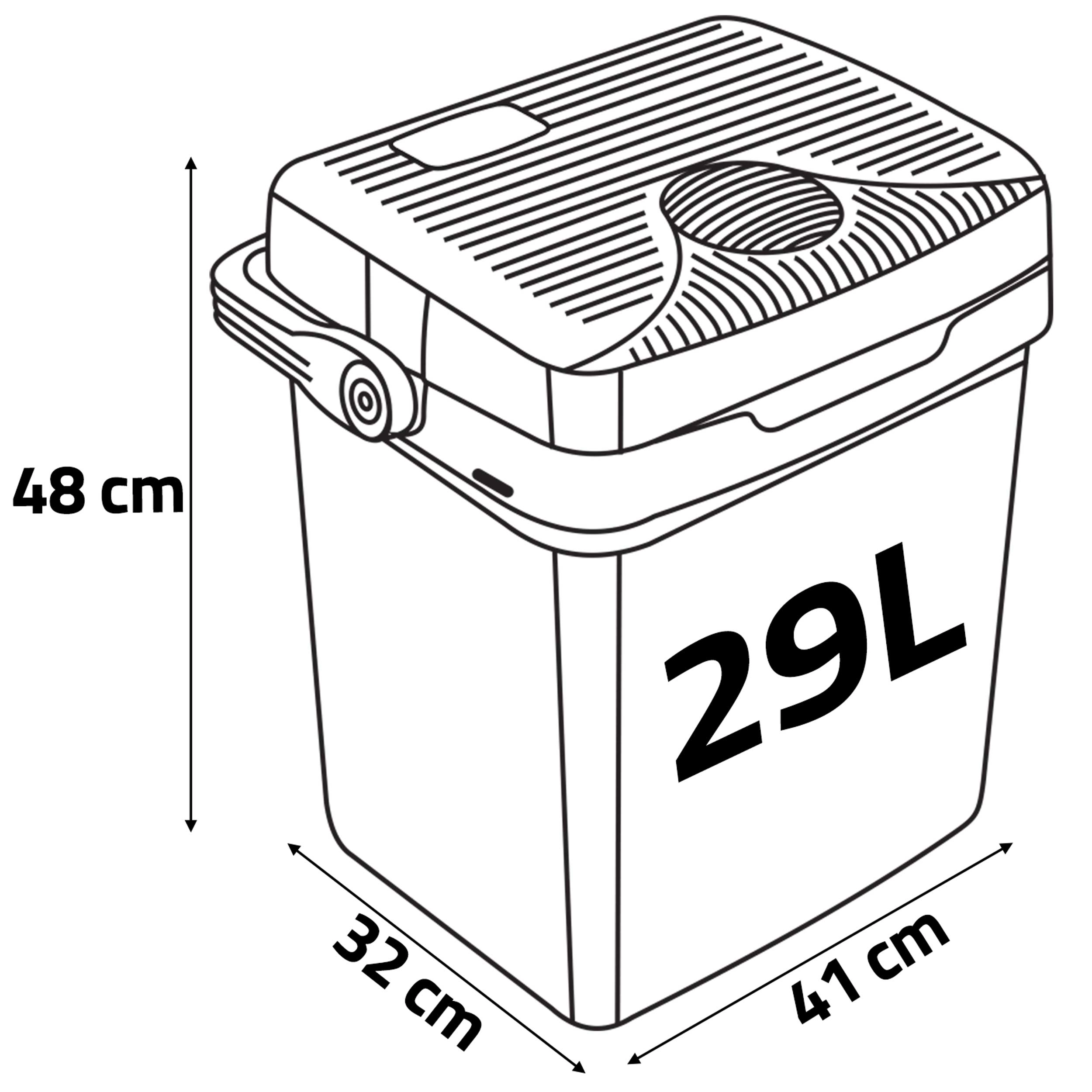 - Capacité 29 l — suffisamment d’espace pour boissons, fruits et plats préparés.