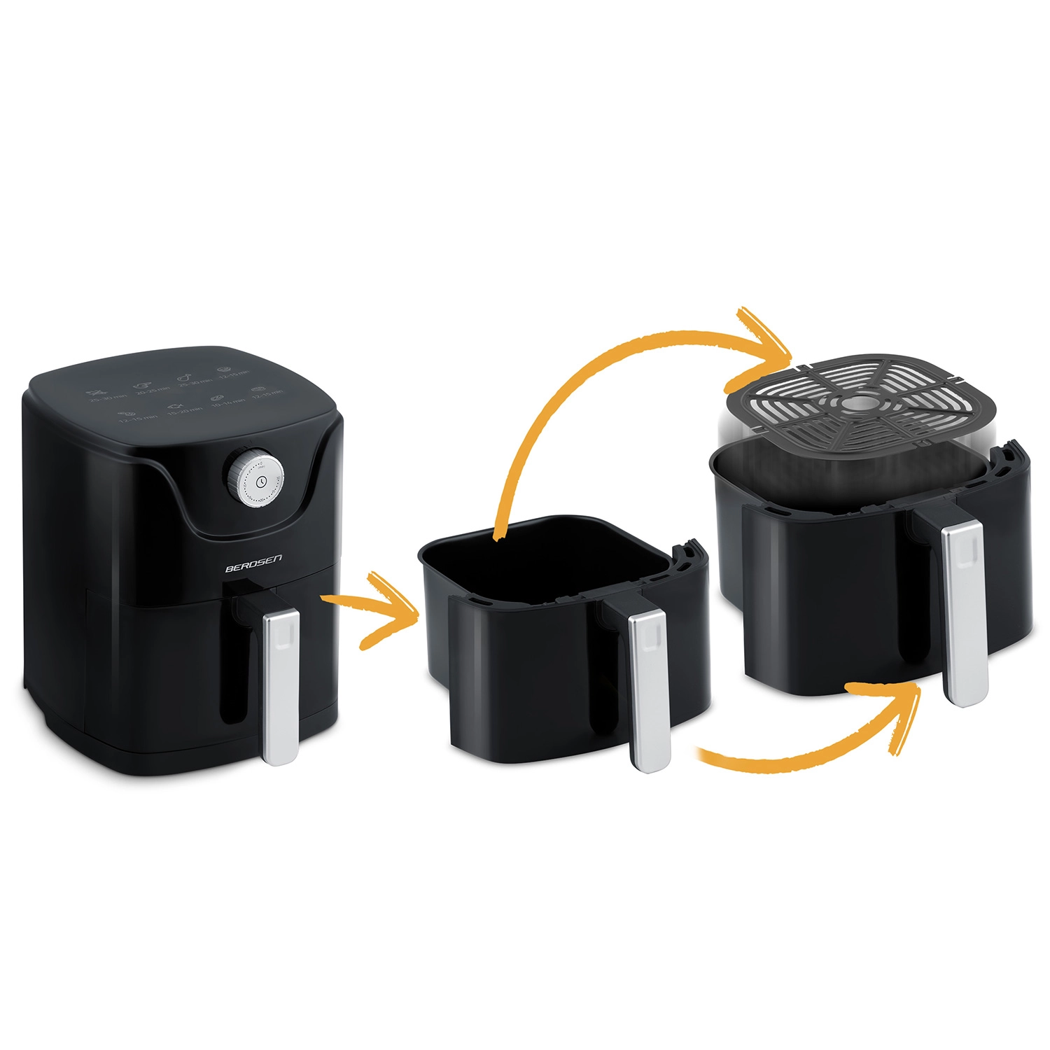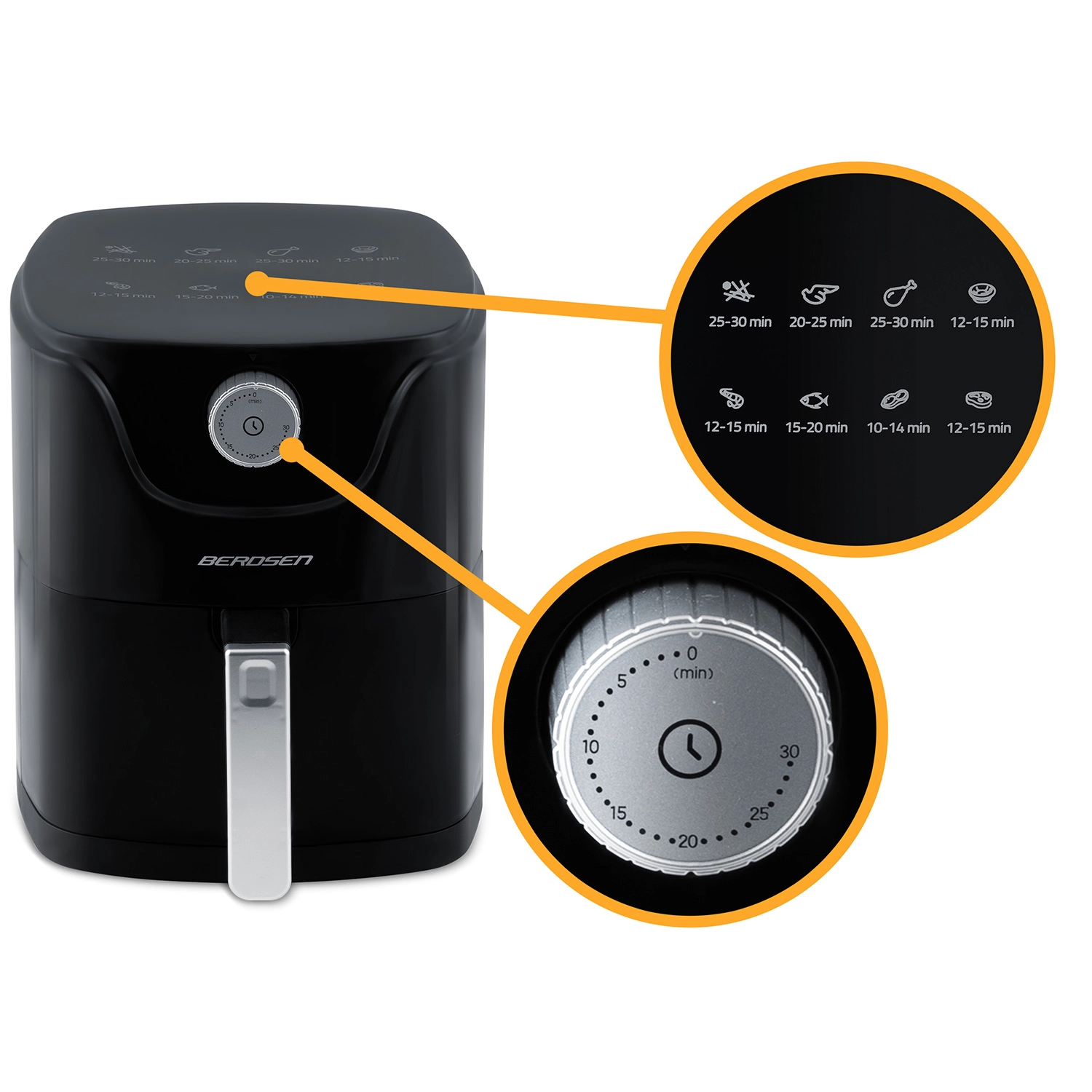 La friteuse à air BERDSEN allie une cuisson plus saine à un confort maximal. Le flux d’air chaud moderne garantit une croûte dorée et croustillante à l’extérieur et un cœur juteux à l’intérieur – presque sans huile, sans odeur et sans éclaboussures. Sa capacité compacte de 2,5 l est idéale pour un déjeuner rapide, des en-cas du soir ou des repas légers en semaine.