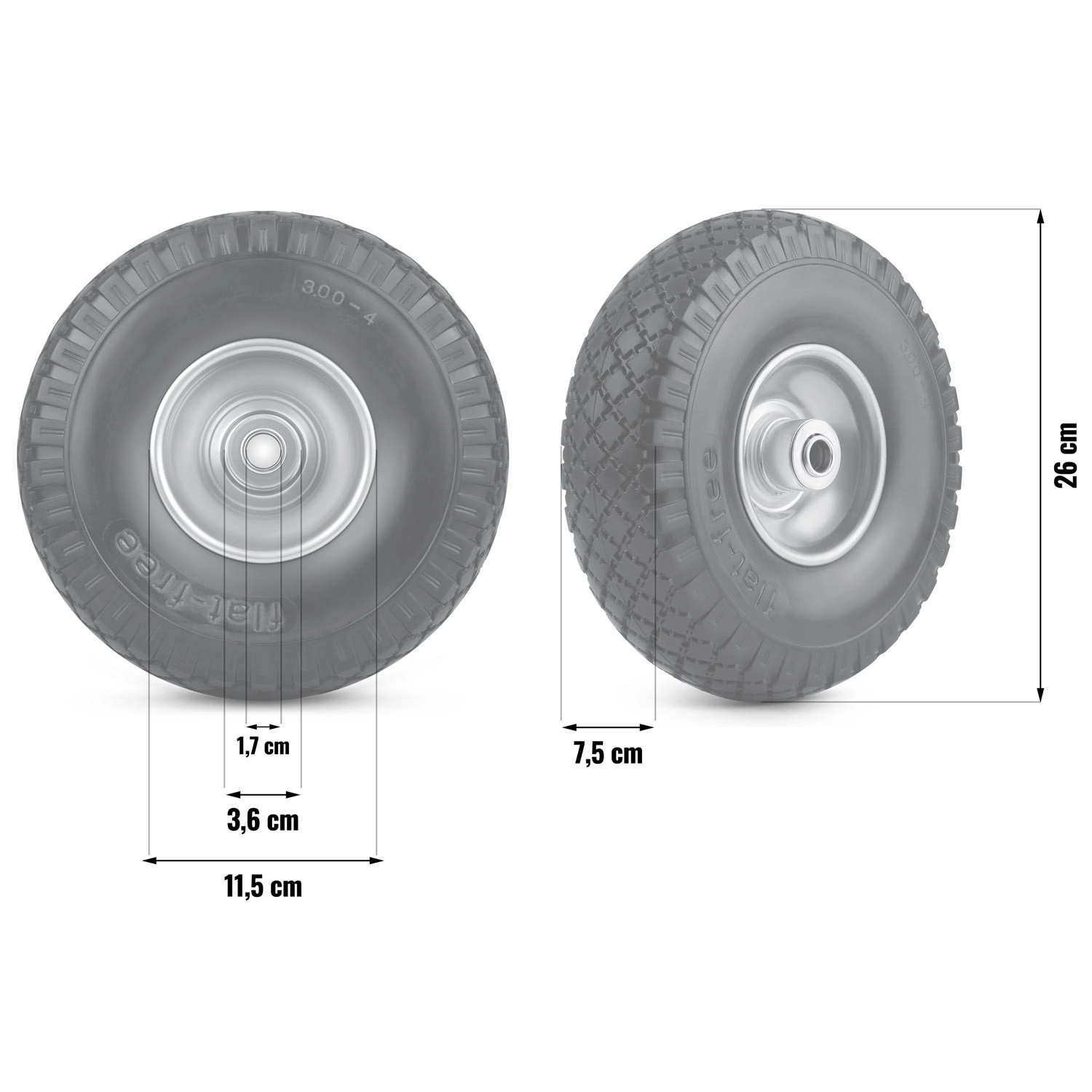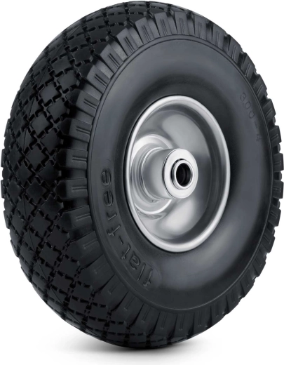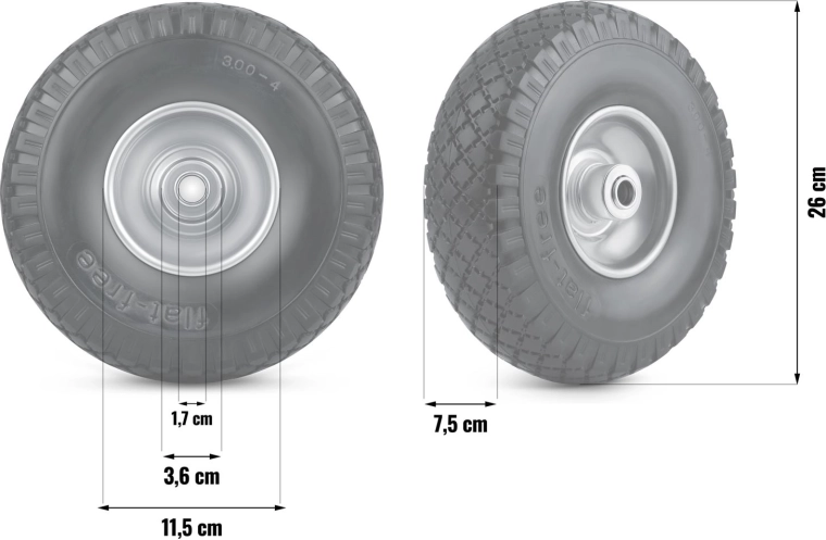 Le profil en losanges de la bande de roulement assure une bonne accroche et une stabilité sur diverses surfaces. Le matériau PU est léger, flexible et résistant à la perforation, de sorte que la roue ne demande aucun gonflage et est prête à être installée immédiatement.