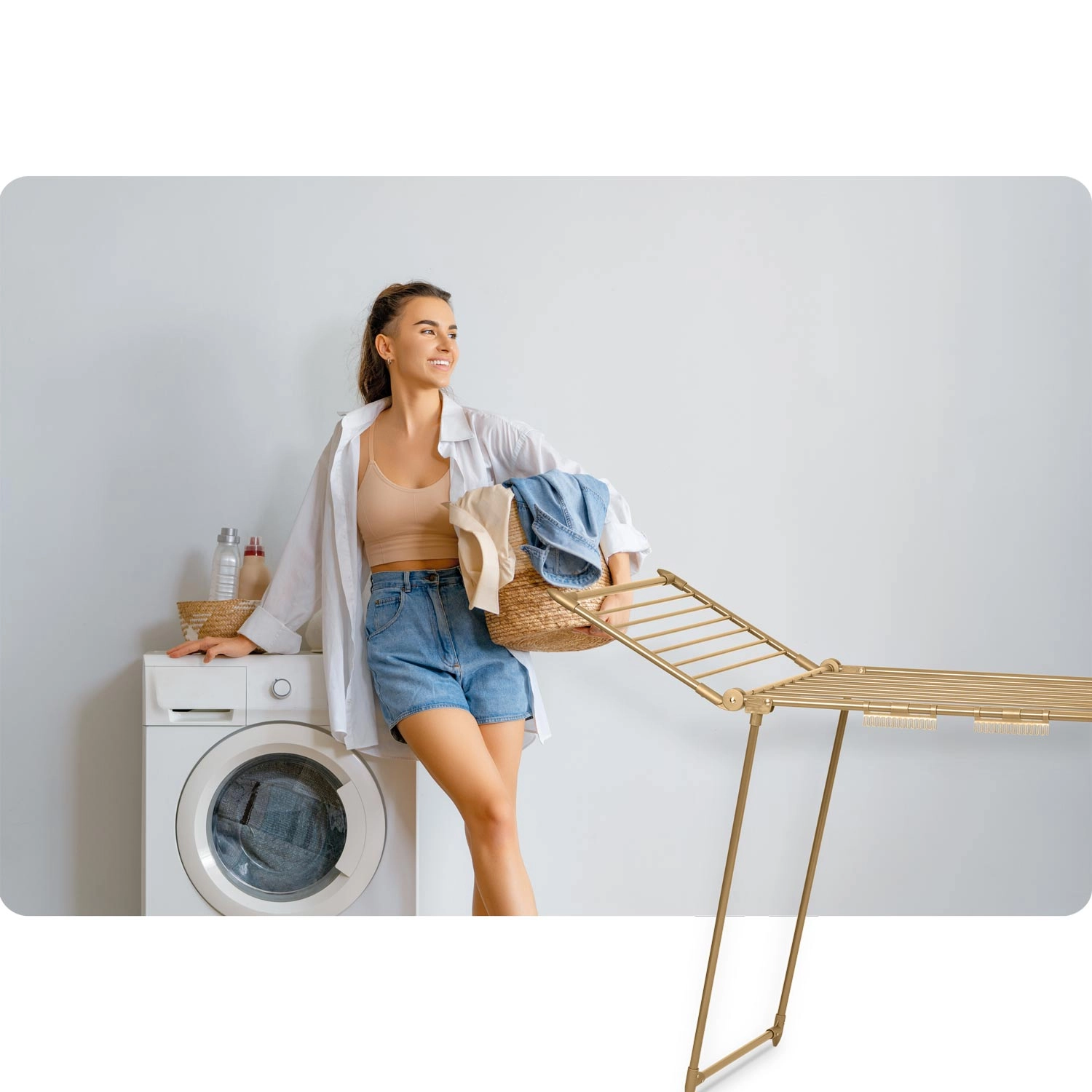 Avec ses deux ailes pliantes et ses supports intégrés pour chaussettes et sous-vêtements, chaque centimètre est optimisé. Une fois le linge sec, le séchoir se plie de façon compacte et se glisse derrière une armoire ou près du lave-linge.