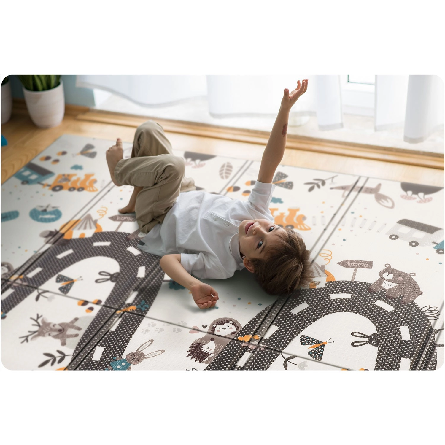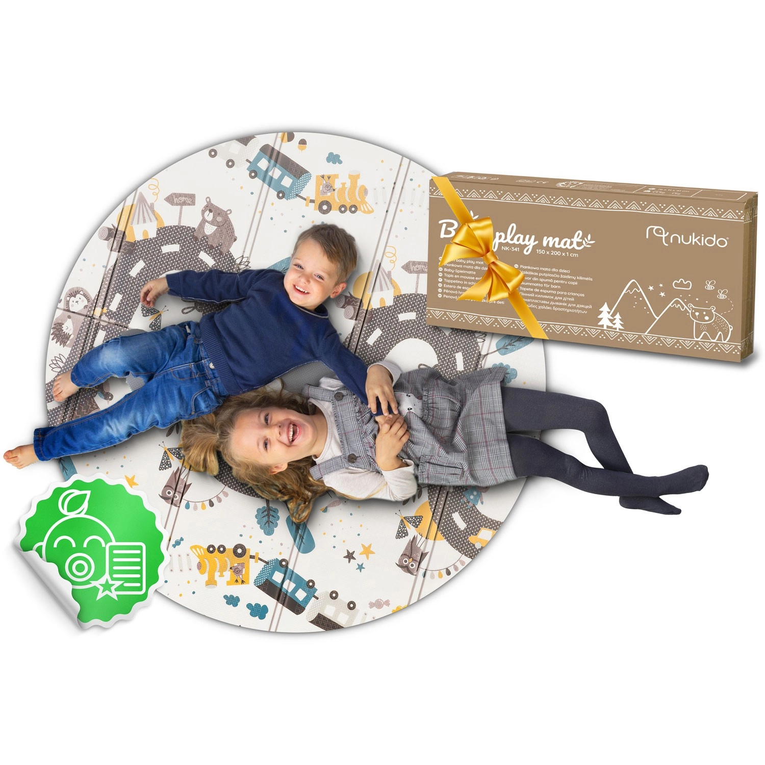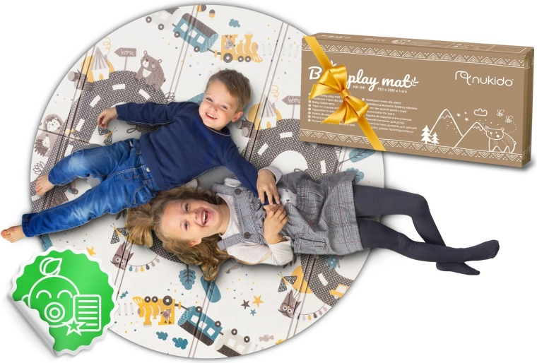 Découvrez le tapis pour enfants Nukido, pratique et esthétiquement pensé, qui accompagne le développement des bébés et des préscolaires. Son design réversible alterne des motifs éducatifs à fort contraste et un thème routier et animalier ludique pour allier jeu et apprentissage. Le tapis est imperméable, facile à nettoyer et, grâce à sa construction pliable, vous l’emmenez partout – salon, chambre d’enfant, terrasse ou pique-nique.