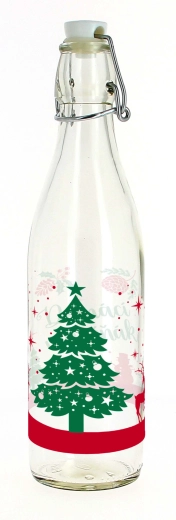Pratique bouteille en verre de 1 l avec une fermeture mécanique fiable, idéale pour la liqueur à l’œuf maison, les liqueurs, sirops ou limonades. Grâce à son joint solide, le contenu reste frais et hermétiquement fermé, tandis que sa forme élégante s’intègre parfaitement dans toute cuisine et fait un excellent cadeau.