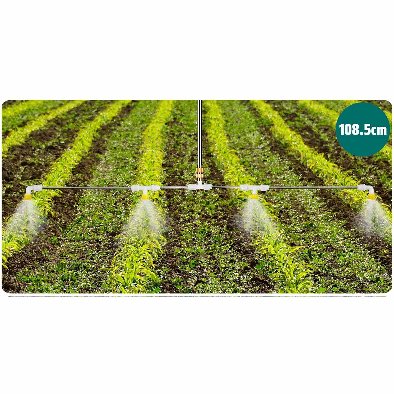La lance à quatre buses permet une pulvérisation homogène sur une largeur allant jusqu’à environ 108,5 cm – idéale pour les grands massifs et les pelouses où vous avez besoin de rapidité et de régularité.