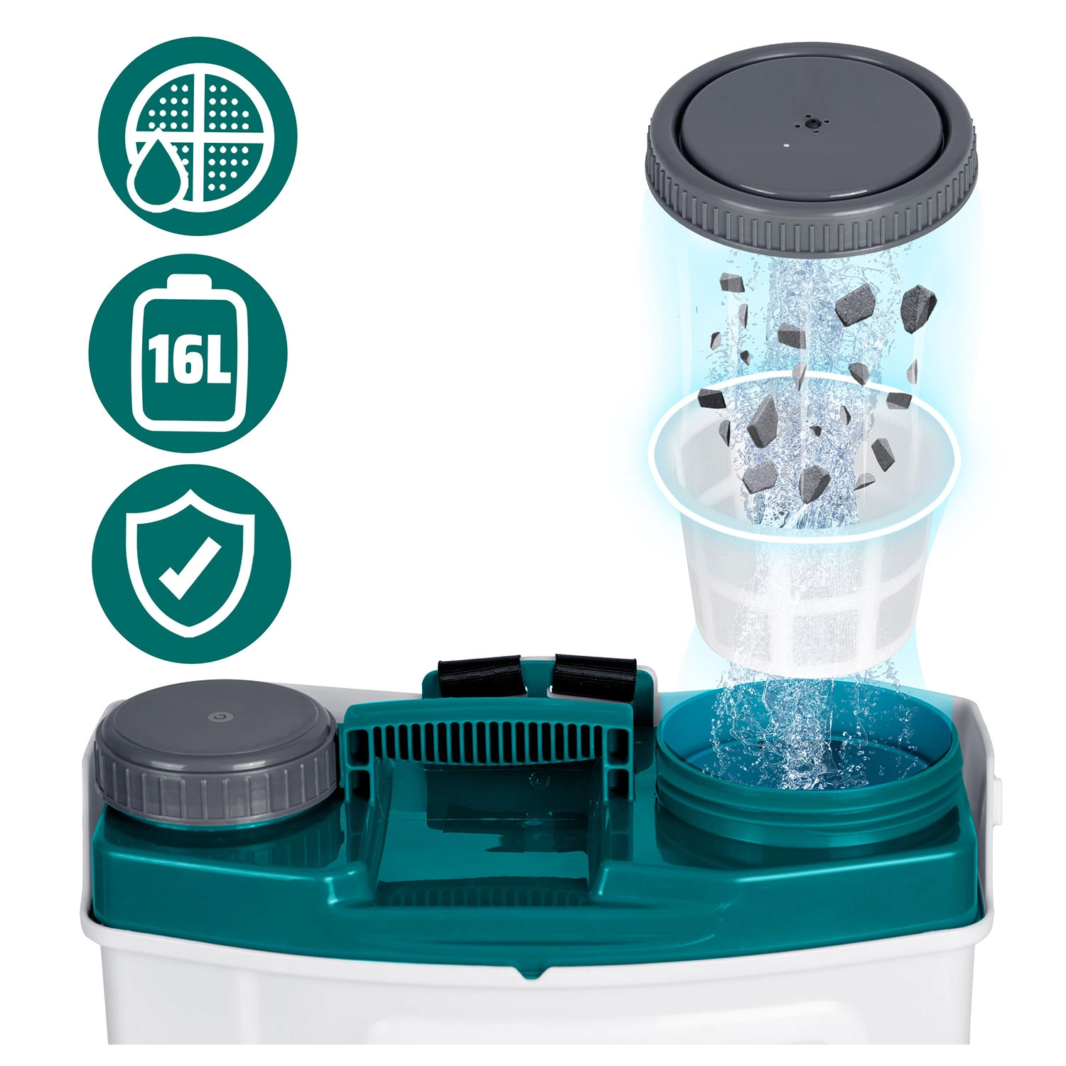Grâce aux 4 buses interchangeables, choisissez facilement le jet idéal – brume fine pour les plantes sensibles, jet plat pour un travail précis, buse réglable à quatre orifices pour un usage polyvalent ou tête double pour une couverture rapide de massifs plus larges. Des bretelles rembourrées et renforcées avec réglage, une crépine filtrante contre les impuretés et un réservoir PE résistant garantissent longévité et confort de travail.