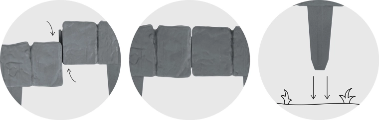 Les piquets intégrés assurent une fixation solide en quelques minutes. Les éléments se connectent simplement et se plantent dans le sol.