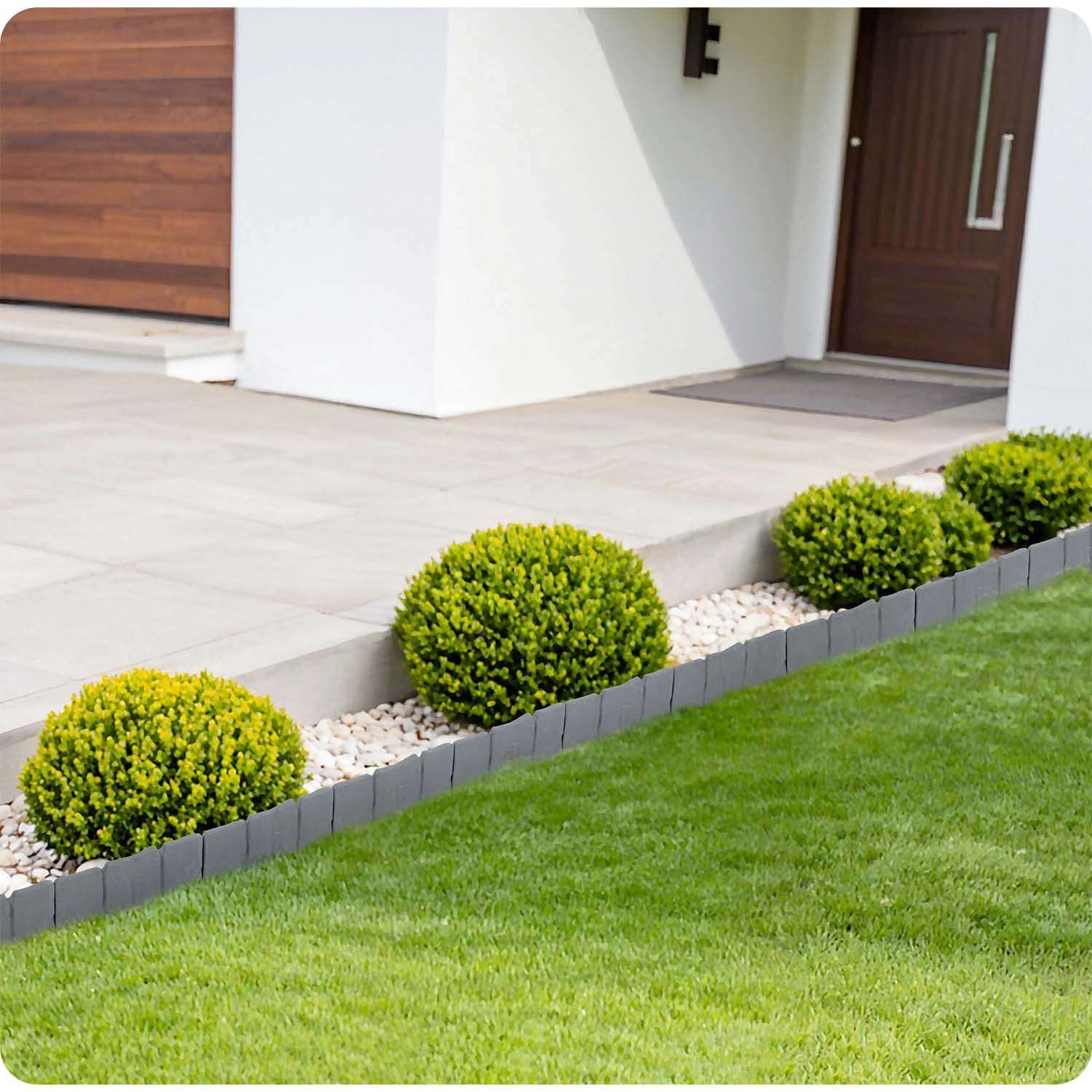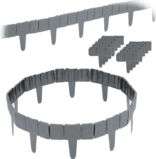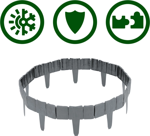 Gardez massifs et pelouse parfaitement séparés avec la bordure de jardin Plonos de 2,5 m. Son système modulaire avec piquets intégrés permet une installation rapide sans outils, le plastique PP résistant est imputrescible et résiste aux UV, au gel et aux intempéries, et l’aspect pierre en gris élégant s’harmonise avec tout jardin. La bordure empêche l’éparpillement de l’écorce ou des graviers sur la pelouse et protège les plantes contre les dommages.